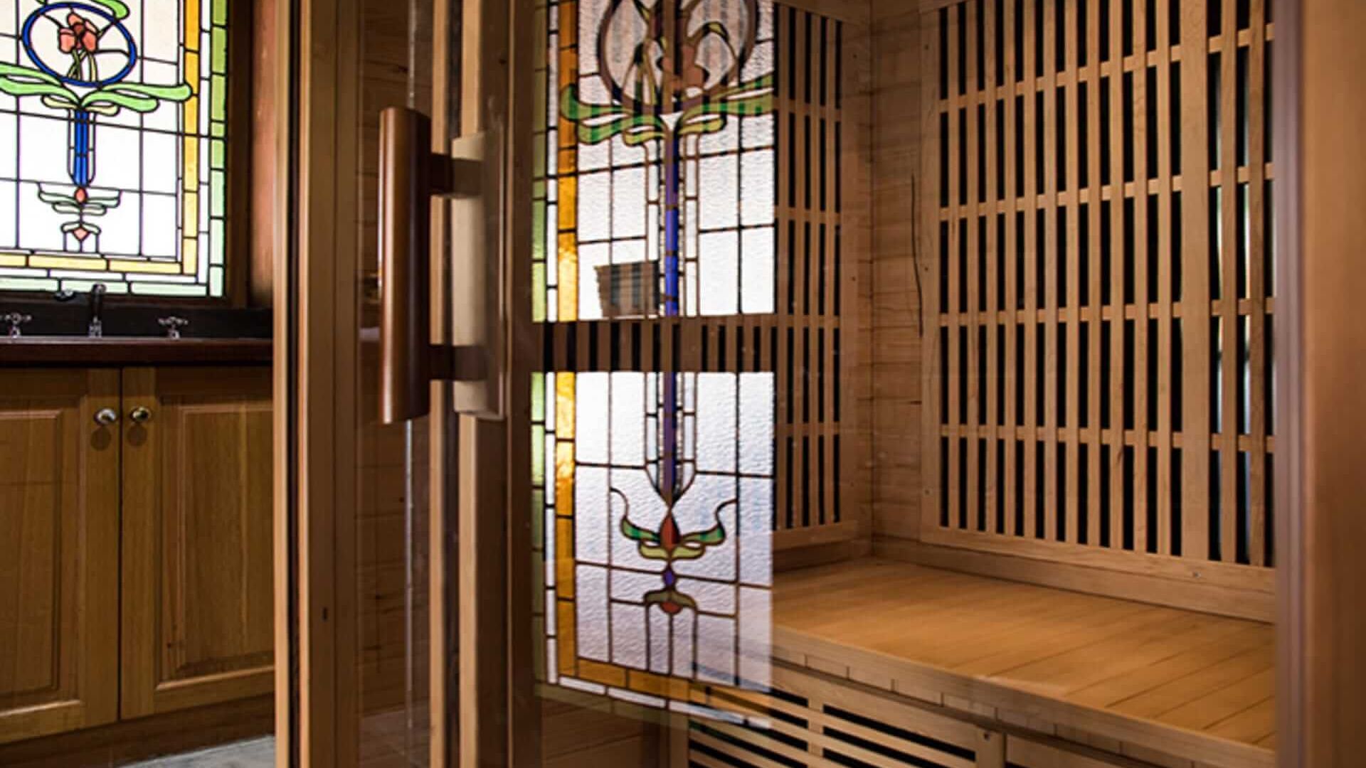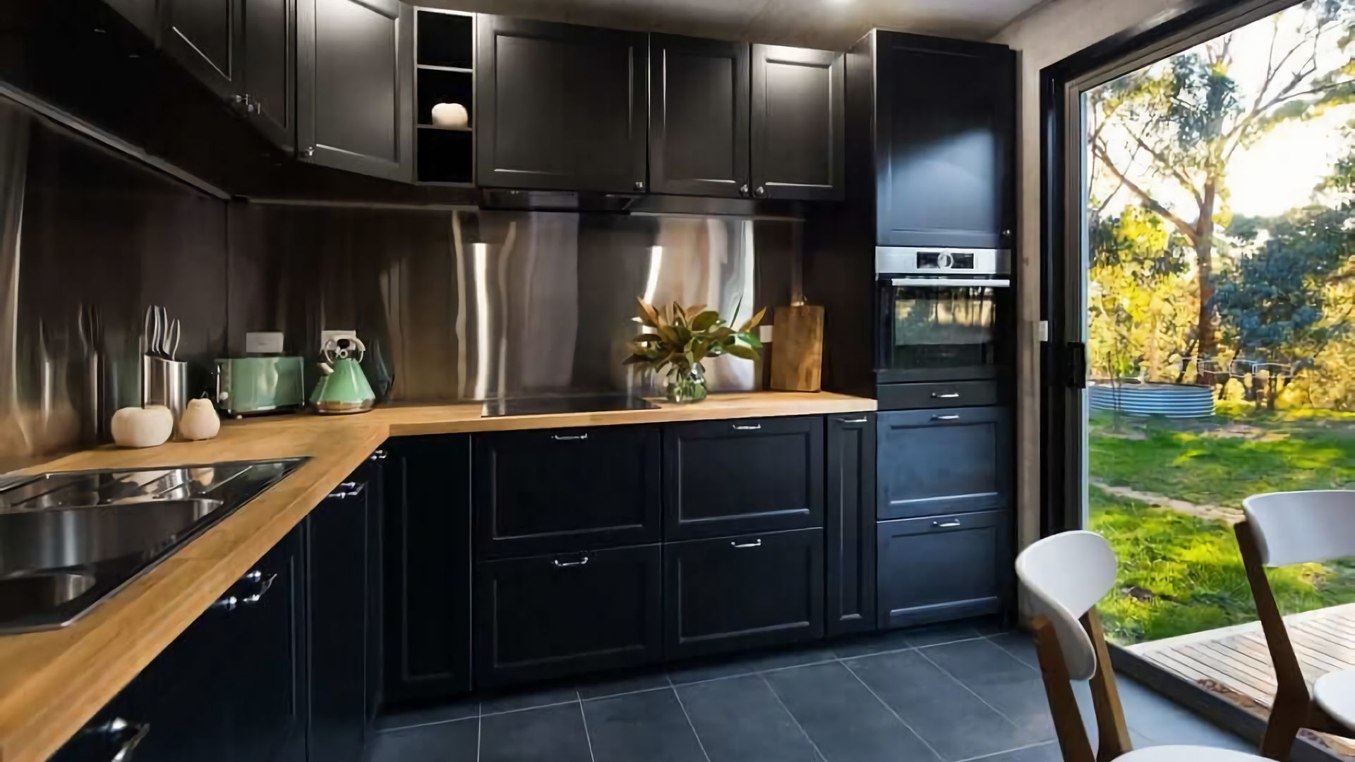 Just 50 meters from the main house, the studio offers a modern indoor aesthetic with sleek dark walls and cabinetry in its bedrooms, bathrooms, and kitchen. The studio’s outdoor entertainment area, set beneath a charming verandah, invites guests from both houses to come together for dining and socialising. An infrared sauna adds a luxurious touch, while the property’s expansive parkland provides a tranquil setting for outdoor activities.