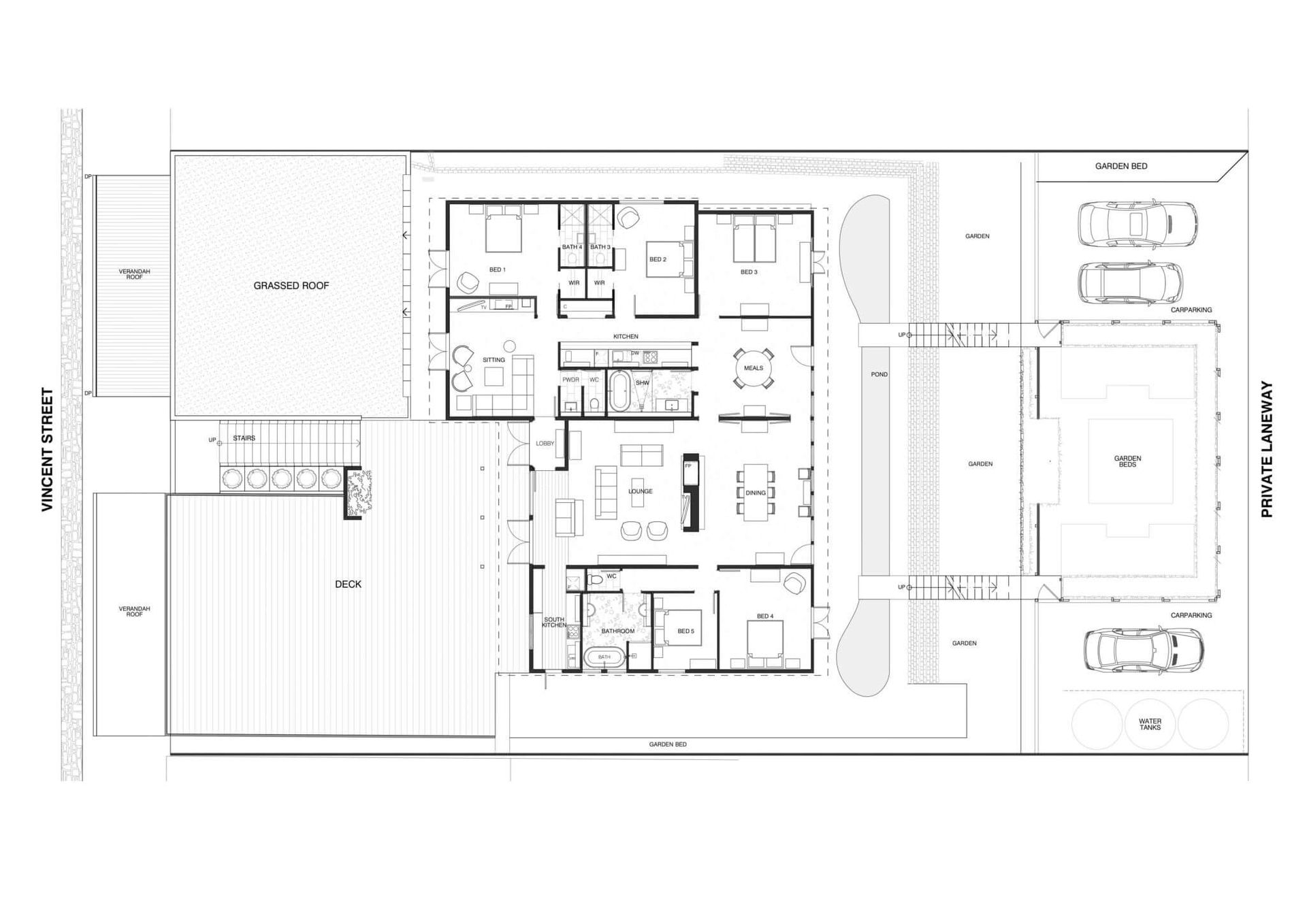 Cousin Gilbert boasts one of the most spectacular garden and outdoor spaces of any property in the Daylesford region. A serene pond, smelling of fresh water and plants, lies between the house and a grove of established magnolia trees. The upper garden is surrounded by a high hedge, featuring a beautiful array of flowers and plants. The home also offers expansive outdoor spaces including an artificial grassed roof terrace furnished with seating and tables, utterly perfect for meals and entertaining at any time of day or night.