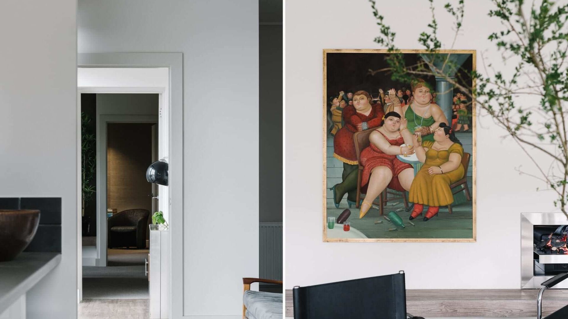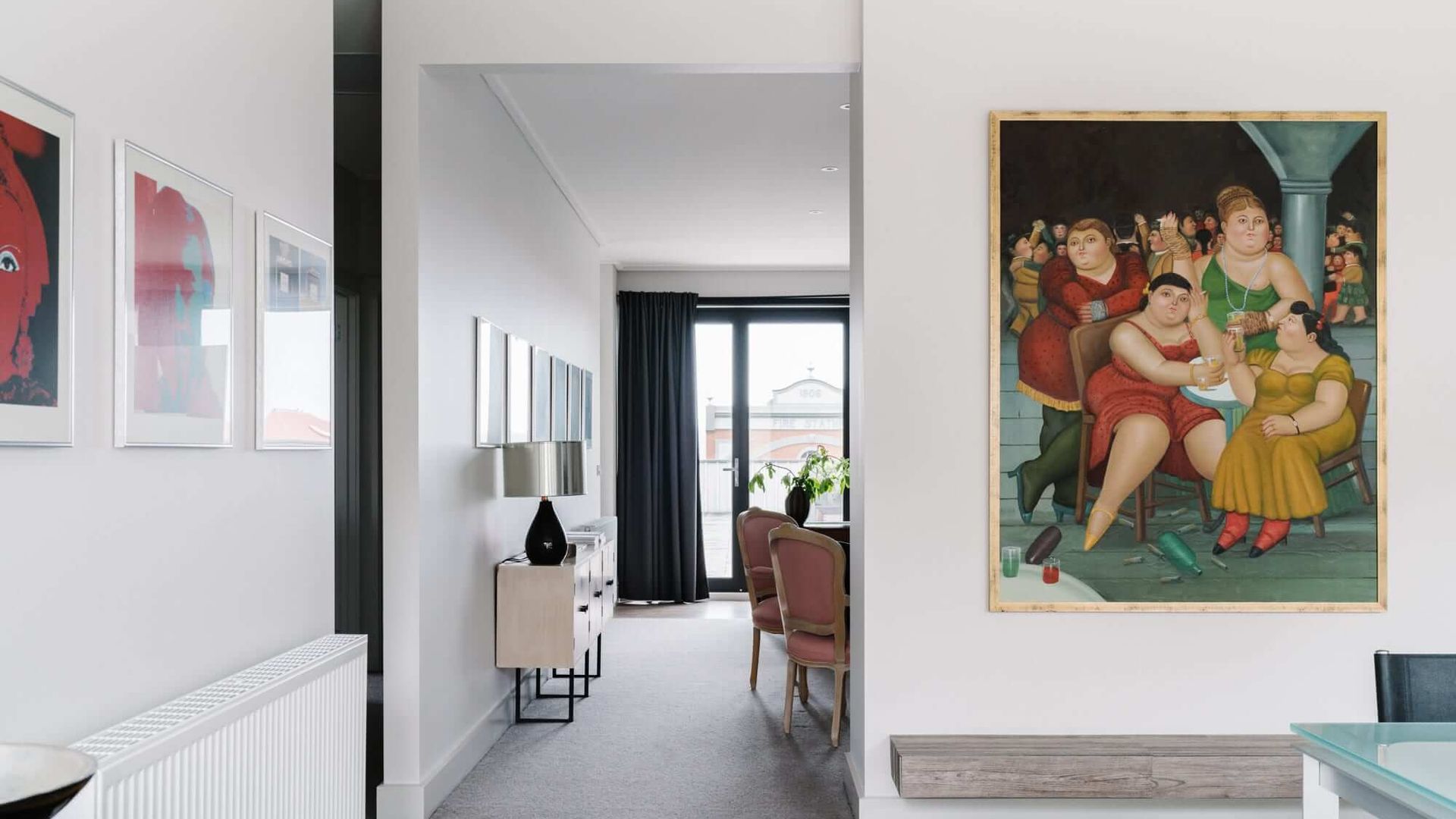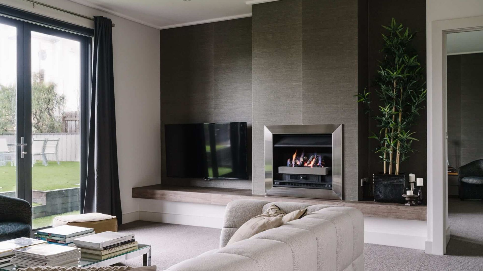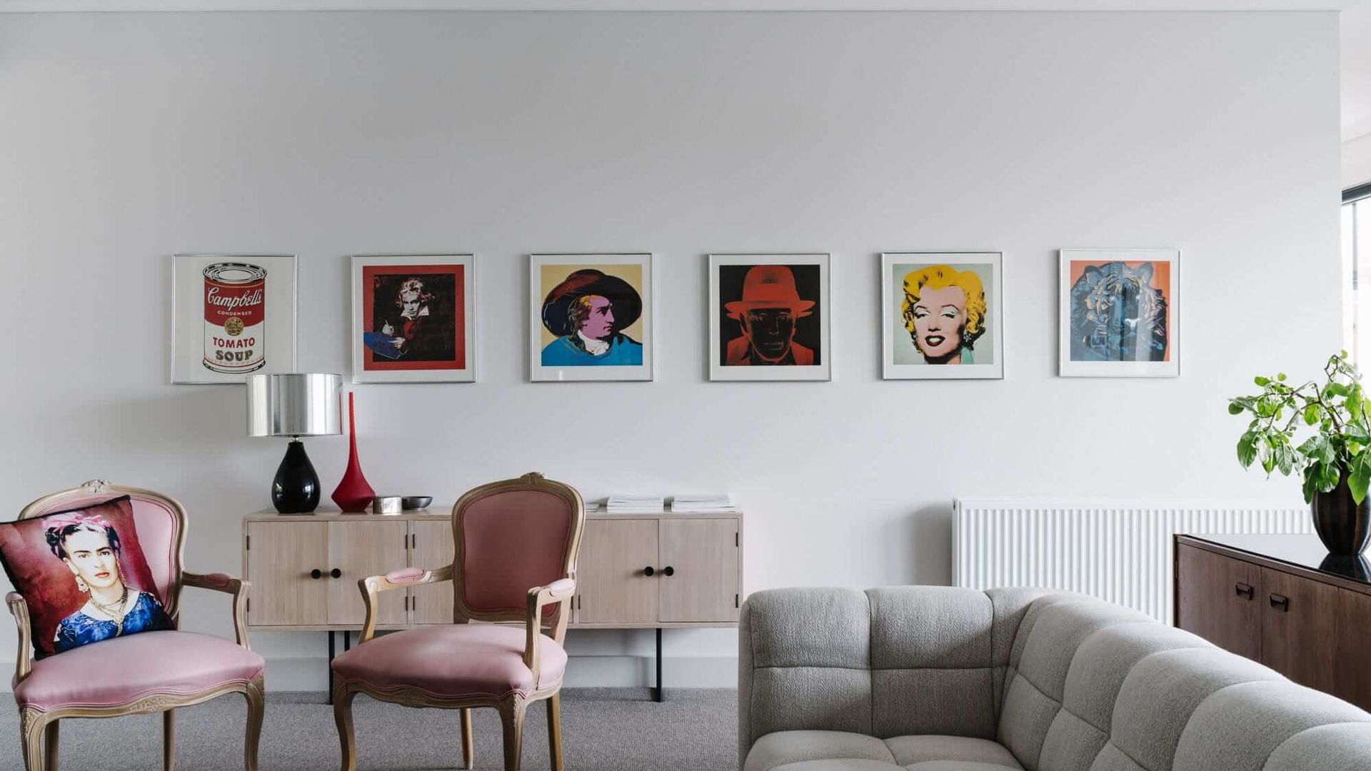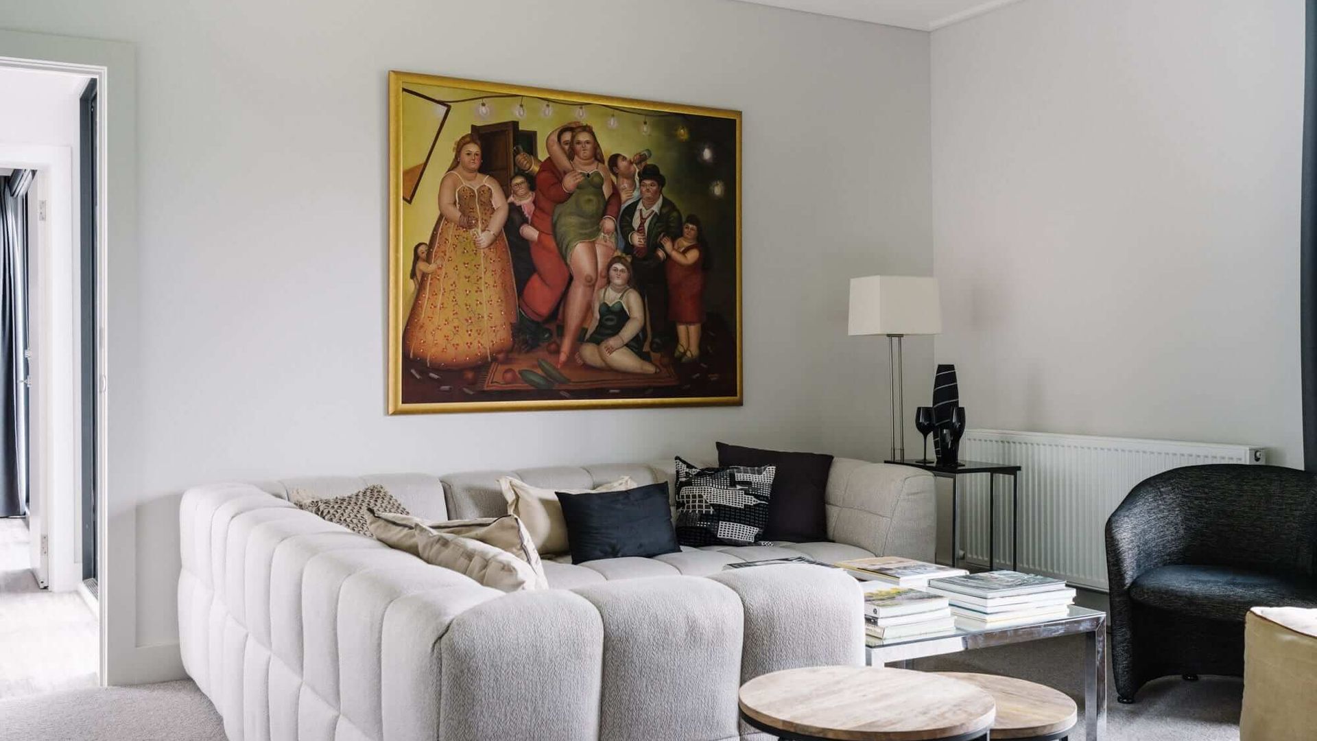 Cousin Gilbert's interior spaces are a cut above what can be expected of even the nicest country getaway. The home enjoys a unified design aesthetic, with dark furnishings providing a beautiful contrast against crisp white walls and luxurious carpet. Uniquely, it boasts two Kitchens and multiple Living and Dining areas. In the lounge, chic seating arrangements and a gas-log fireplace make for a cosy but sophisticated atmosphere. Iconic images from pop culture grace the walls in the form of paintings and prints, striking yet unobtrusive.
