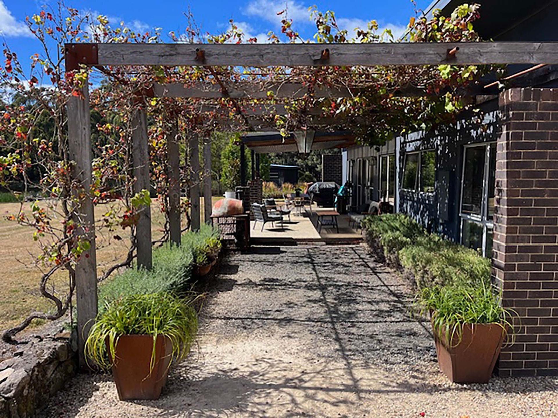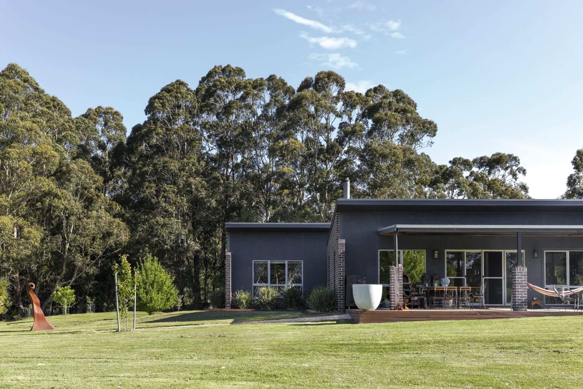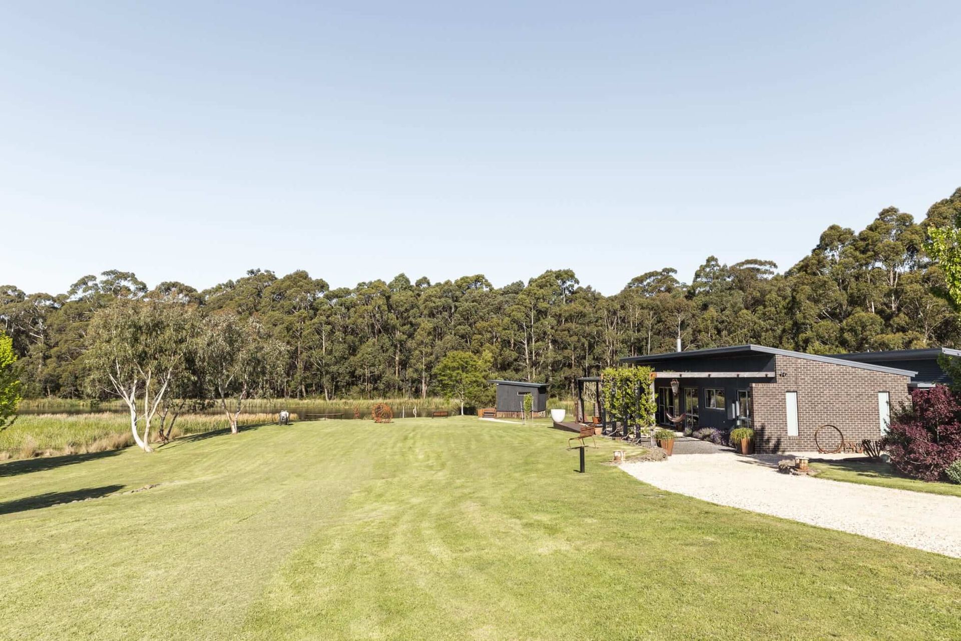 Wombat Edge is a contemporary country retreat set on 10 picturesque acres in sunny Lyonville. Accommodating up to 9 guests, the property features 3 bedrooms with king beds (convertible to singles) and two sofa beds across the studio and living room. Surrounded by stunning gardens and a spring-fed lake teeming with wildlife, the property also provides bikes for exploring the scenic Victorian countryside. Cycle to nearby Trentham and visit the historic RedBeard Bakery for a glimpse into traditional culinary practices.