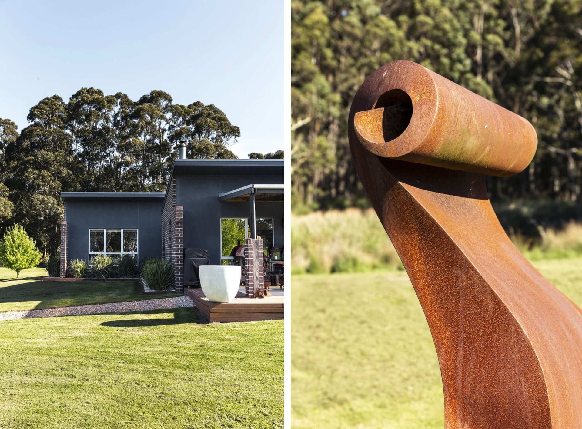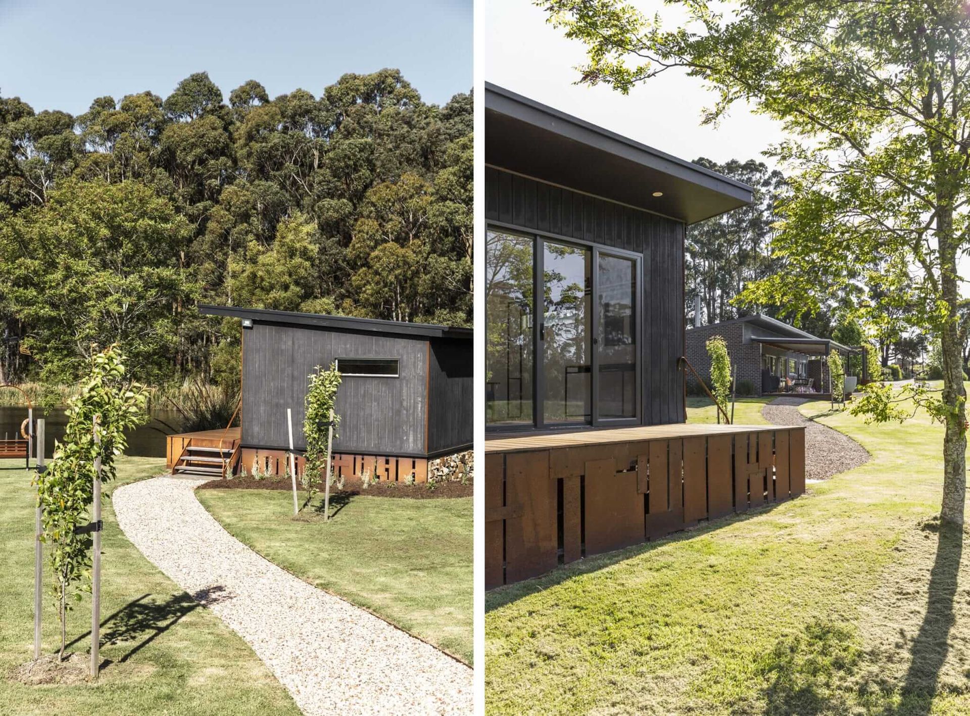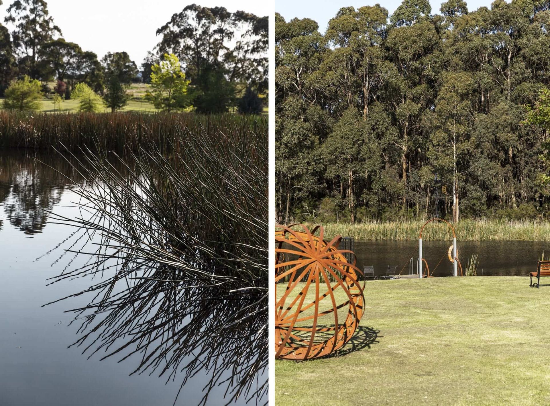Wombat Edge is a contemporary country retreat set on 10 picturesque acres in sunny Lyonville. Accommodating up to 9 guests, the property features 3 bedrooms with king beds (convertible to singles) and two sofa beds across the studio and living room. Surrounded by stunning gardens and a spring-fed lake teeming with wildlife, the property also provides bikes for exploring the scenic Victorian countryside. Cycle to nearby Trentham and visit the historic RedBeard Bakery for a glimpse into traditional culinary practices.