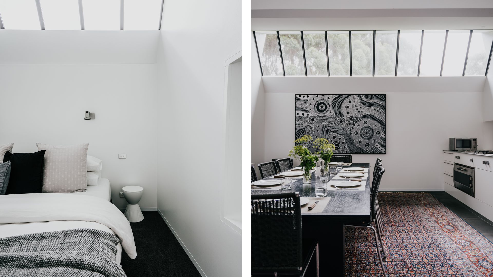 The residences are designed to sustainably ‘breathe’. Passive solar heating and gas-fired hydronics means that variations in winter sunshine can mean temperatures do vary (so do bring extra clothing just in case!). In summer, the Southern Ocean. breeze naturally ventilates and cools.