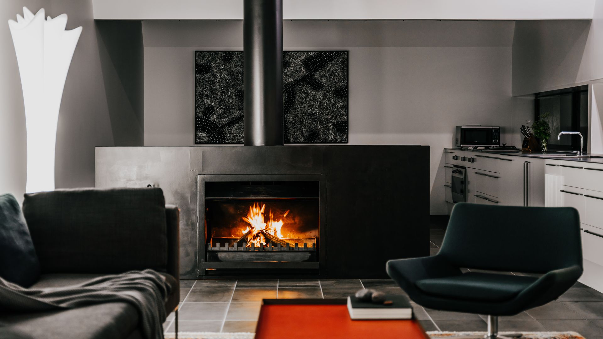 The residences are designed to sustainably ‘breathe’. Passive solar heating and gas-fired hydronics means that variations in winter sunshine can mean temperatures do vary (so do bring extra clothing just in case!). In summer, the Southern Ocean. breeze naturally ventilates and cools.