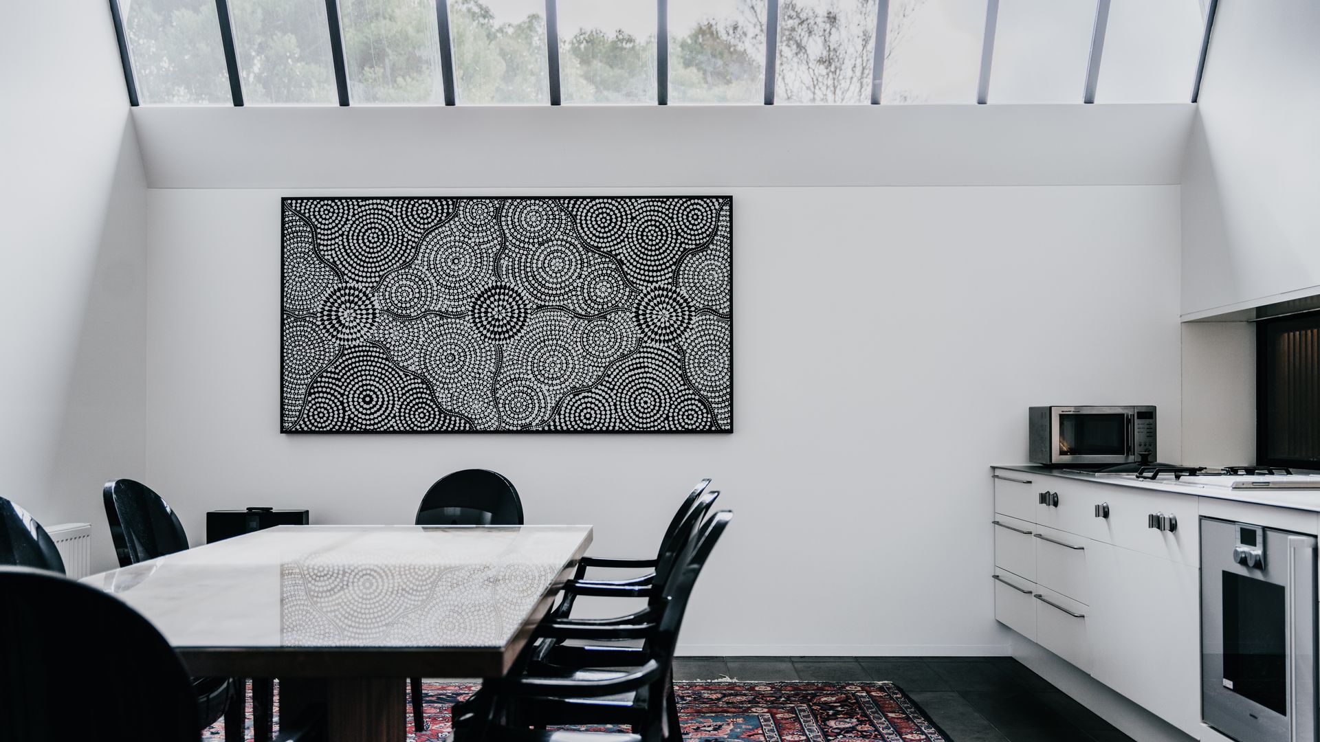 Created by acclaimed architects Glenn Murcutt and Wendy Lewin, this contemporary two-bedroom residence is designed to ‘touch the earth lightly.’ Clean lines, stone floors, natural light, and a minimalist aesthetic create a serene sanctuary. Floor-to-ceiling and sky windows flood the space with daylight and offer unforgettable stargazing after dark.