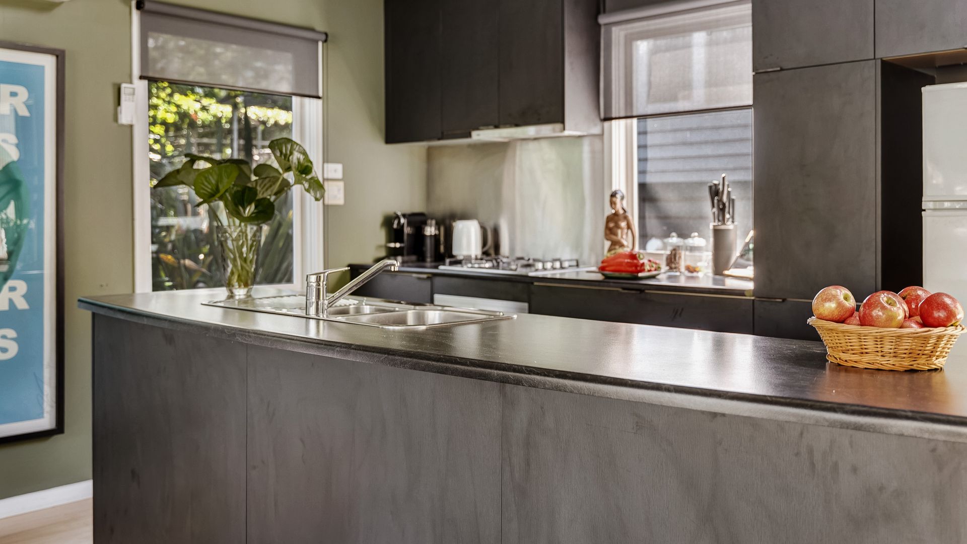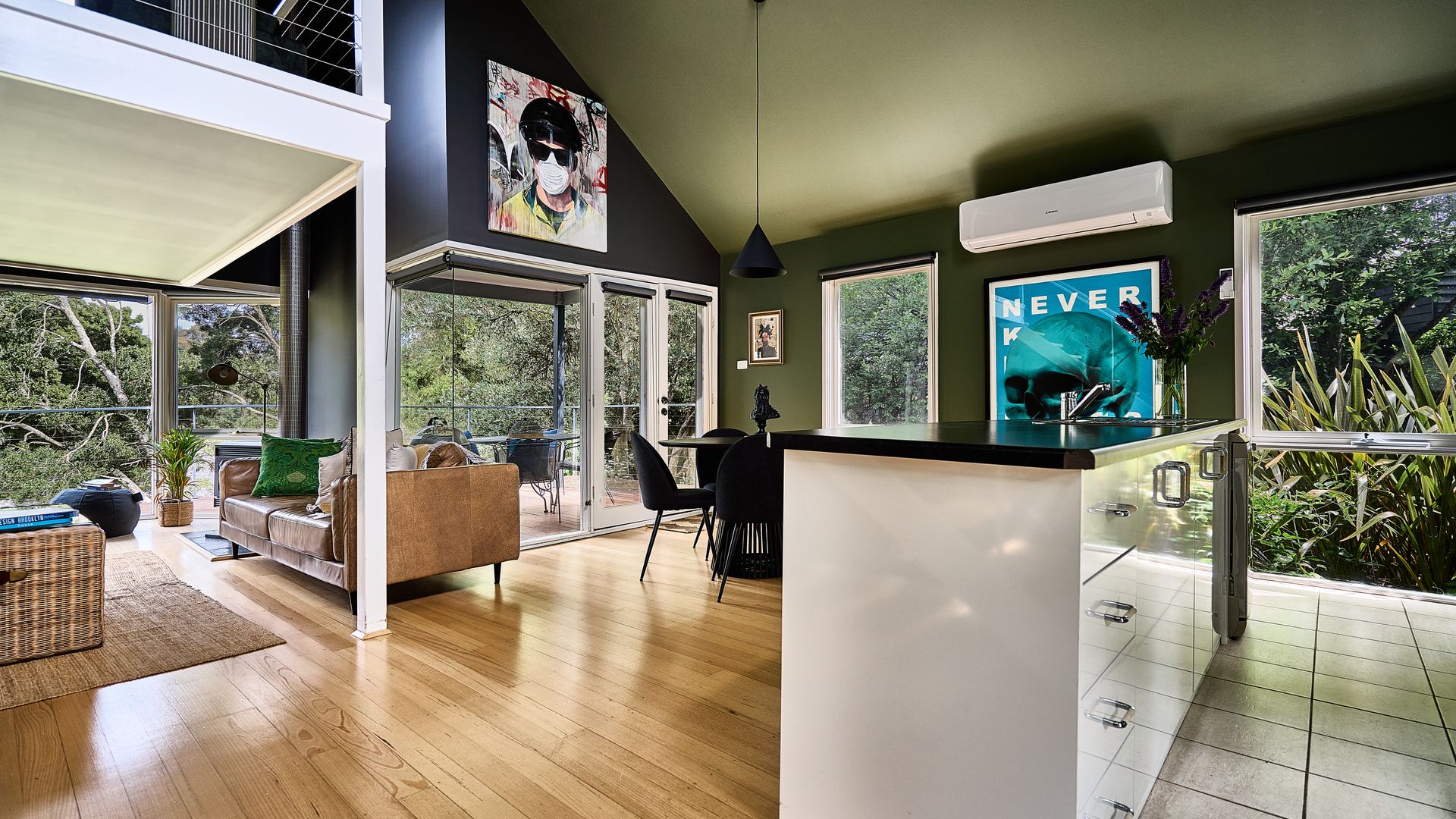 Step through the green door into this recently refurbished lakeside villa featuring real art and photography from leading Australian Artists including Rone, Josh Bowes and Kid Zoom. This stylishly curated villa with rich tones and plush wallpaper is located right next to the iconic Lake Daylesford with uninterrupted views across the Lake.