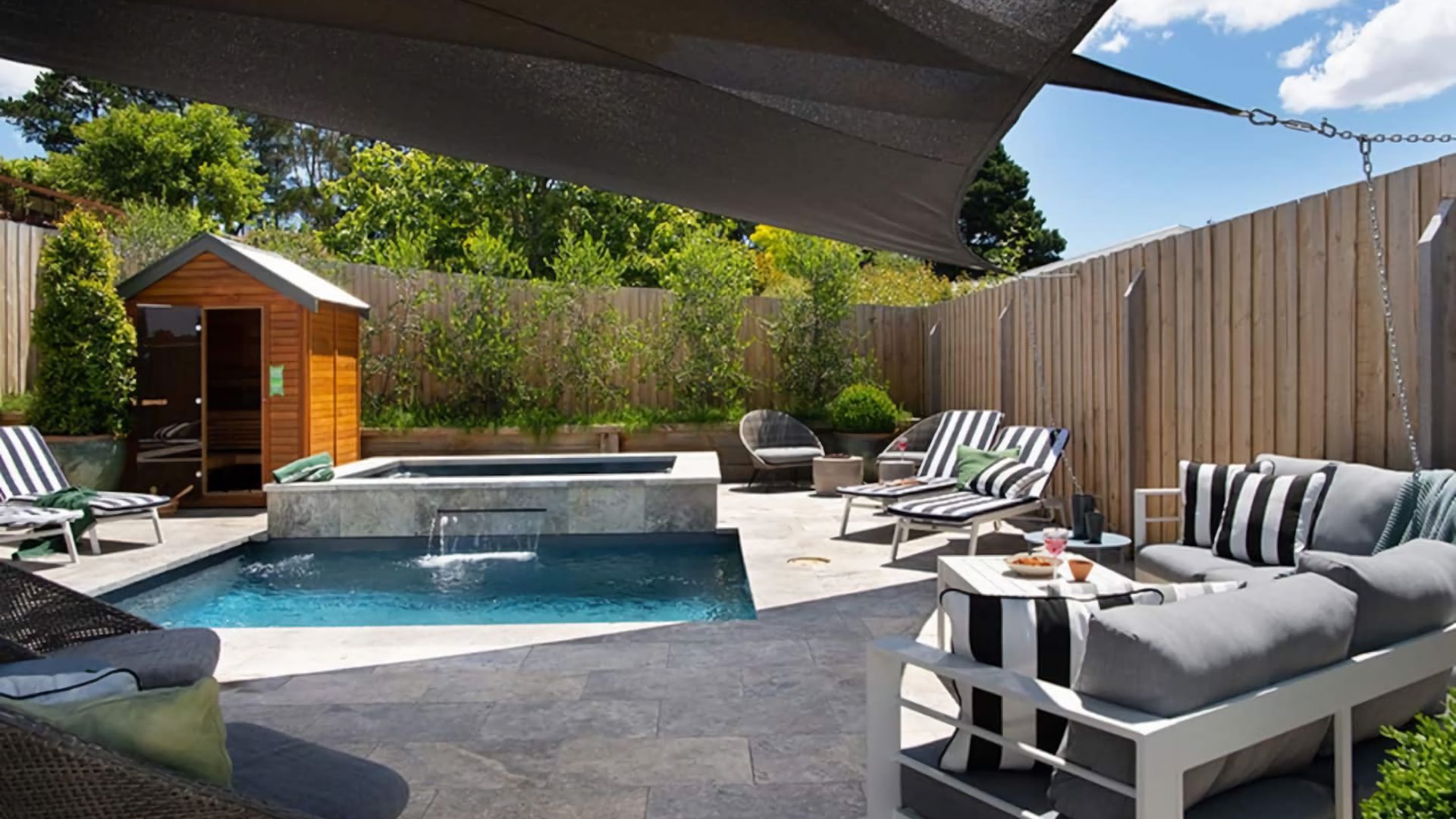Explore the delightful features of Florence, a Daylesford retreat seamlessly blending classic charm with resort-style amenities. Immerse yourself in the rejuvenating ambiance of the four-person 'Hot Rocks' sauna, solar-heated plunge pool, and saltwater spa equipped with Hydrotherapy Massage Jets. The surrounding silver travertine tiles create a classic resort-like atmosphere during the day, complemented by feature lighting that enhances the pool, spa, and outdoor entertaining area. Enjoy the rare combination of privacy and stunning garden vistas that sets Florence apart in Daylesford.