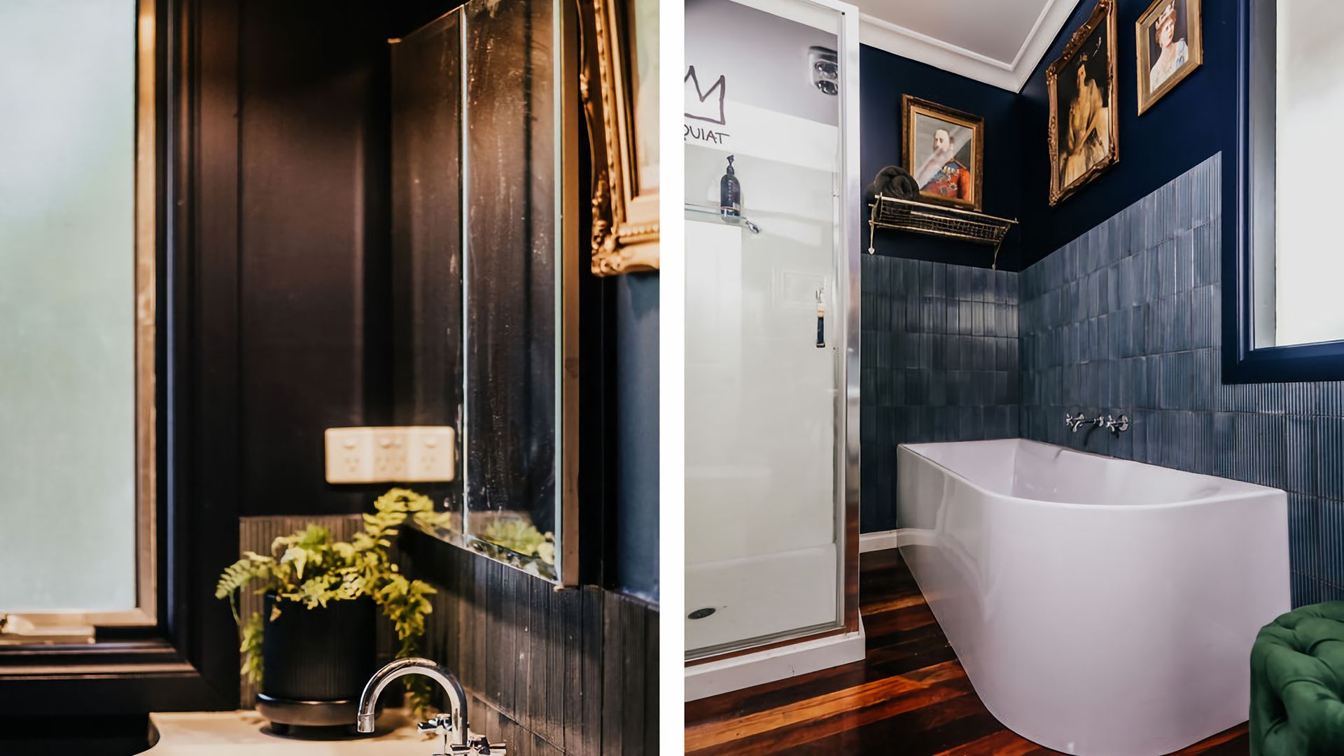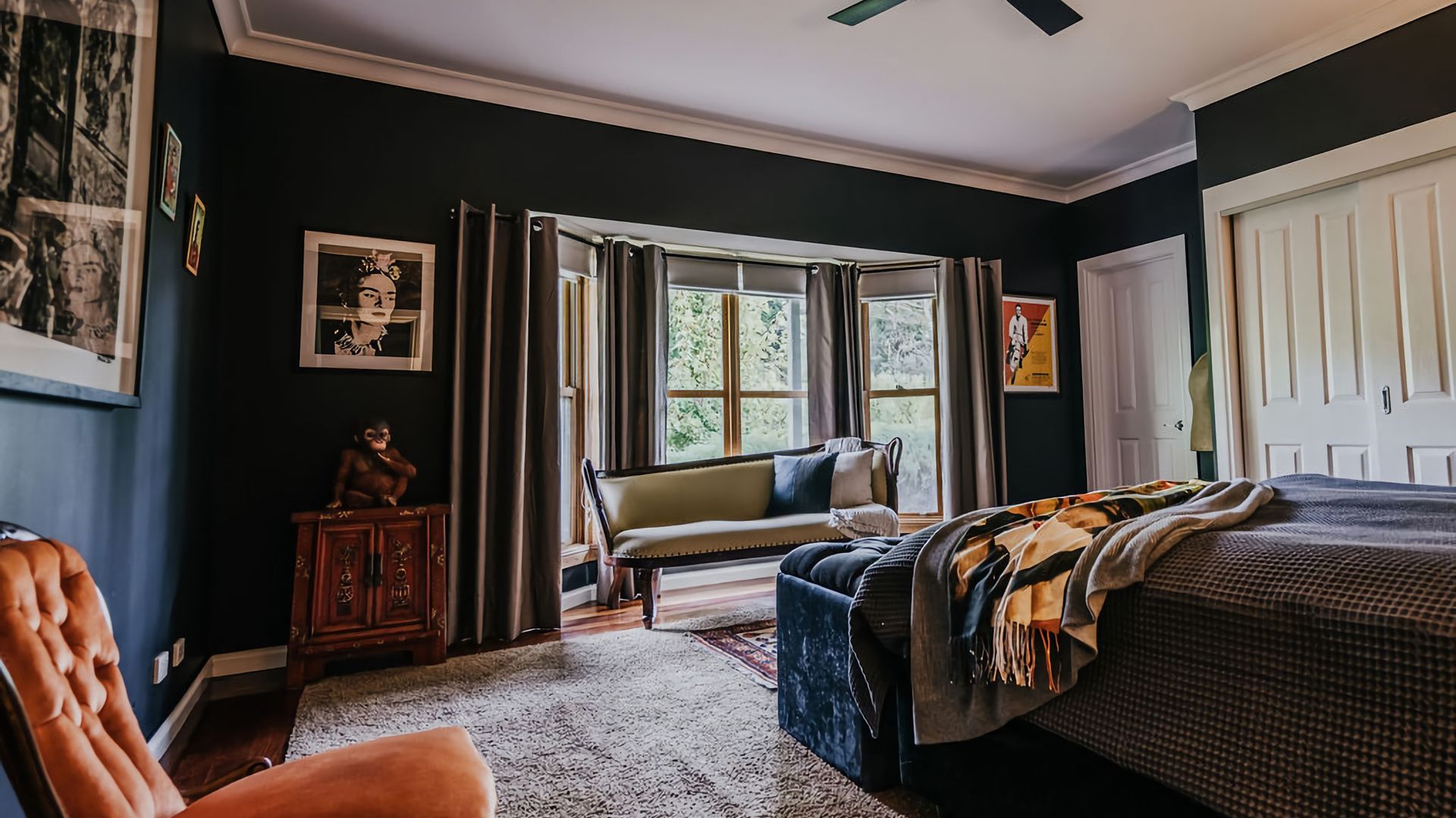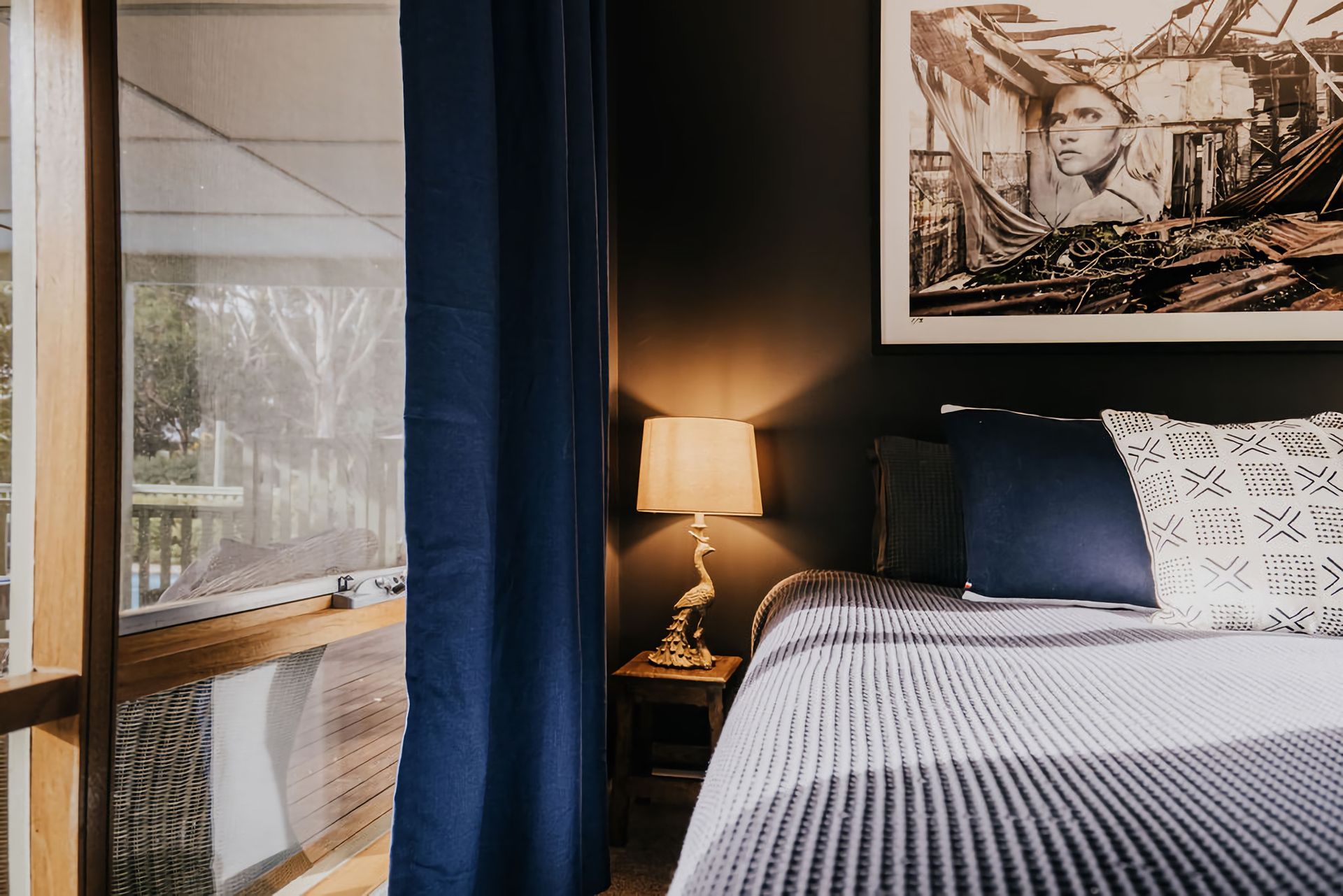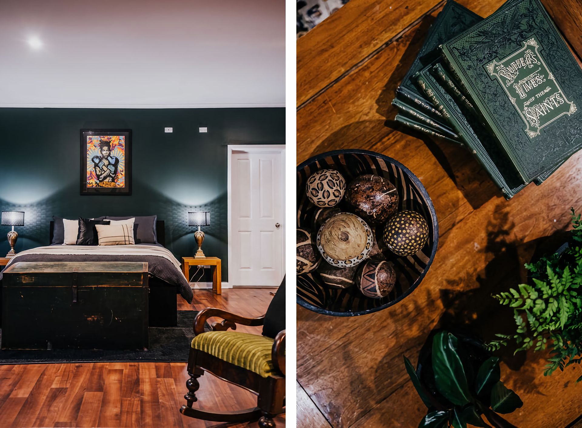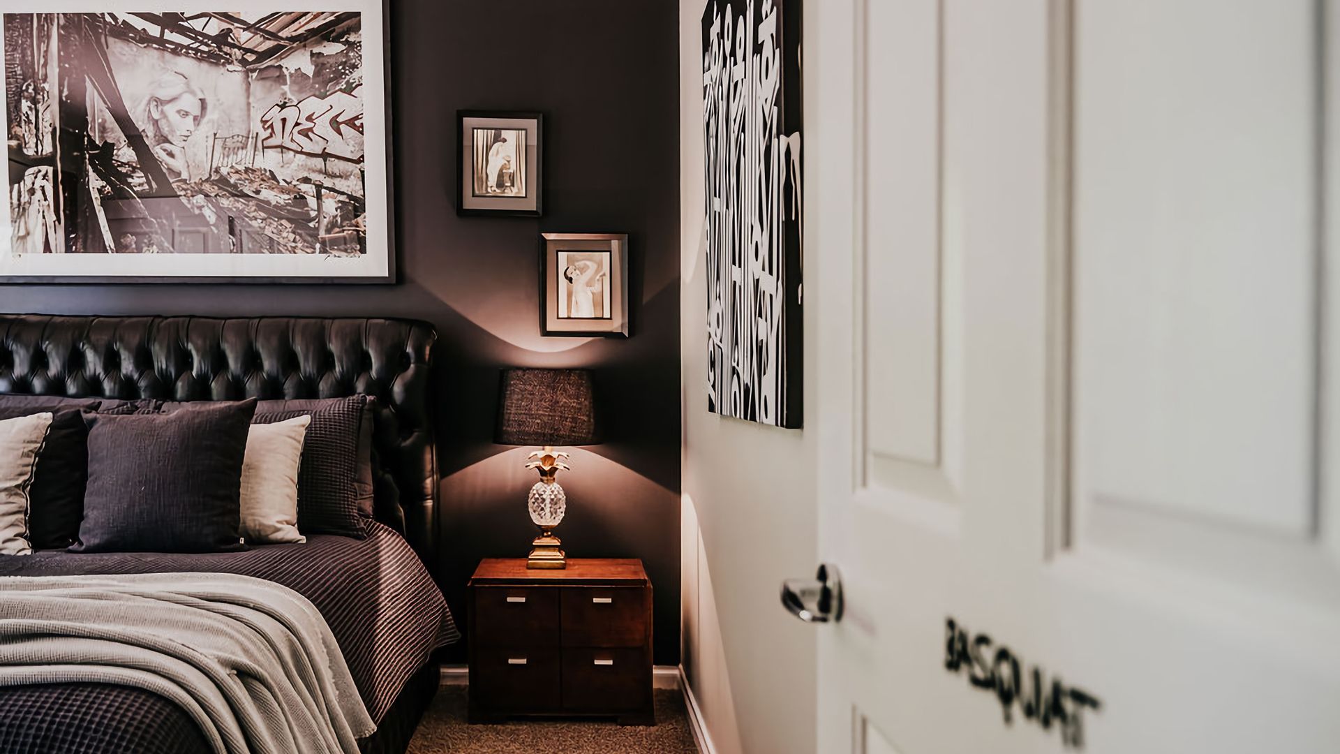 The dark walls and deep velour couches give this home a moody, contemporary edge. Coupled with the incredible array of curated artwork that pepper every wall and surface, Istana Lodge gives the feel of staying in a cosy local gallery. Along with statement furniture, indoor plants, and pops of colour, there is no shortage of elements to draw the eye.