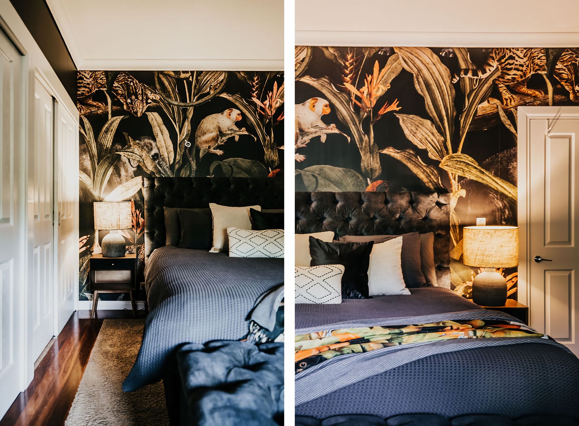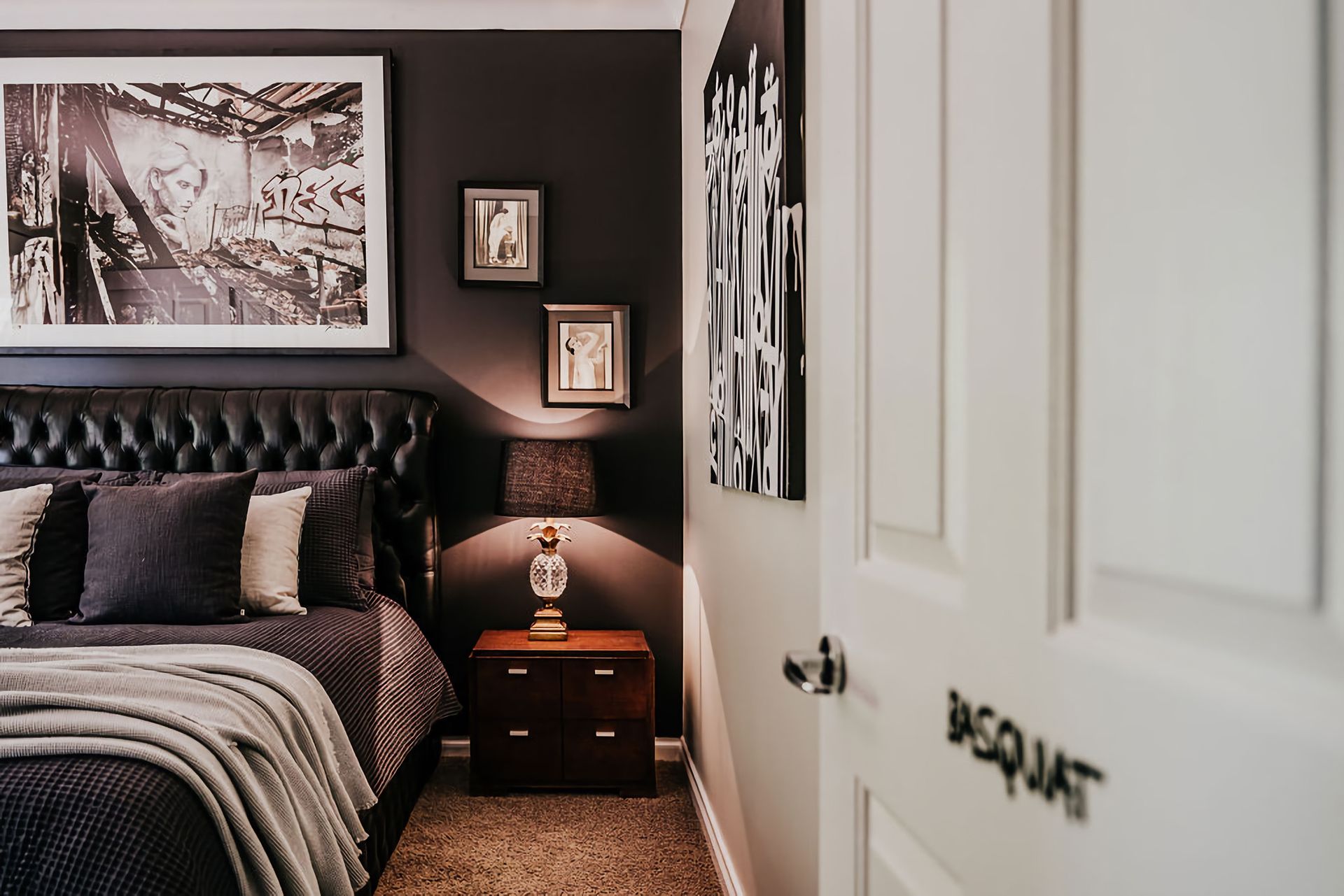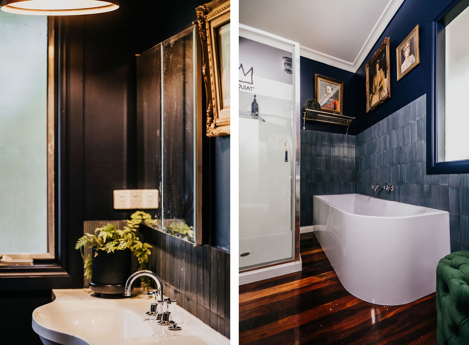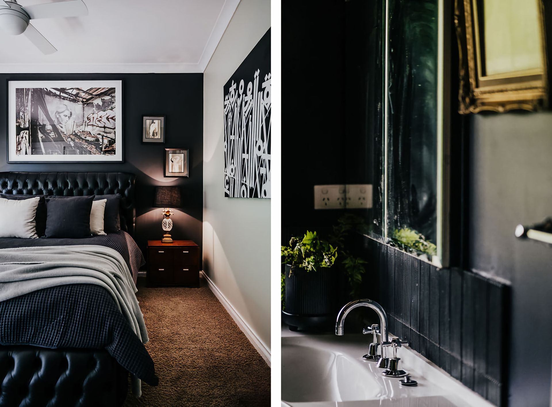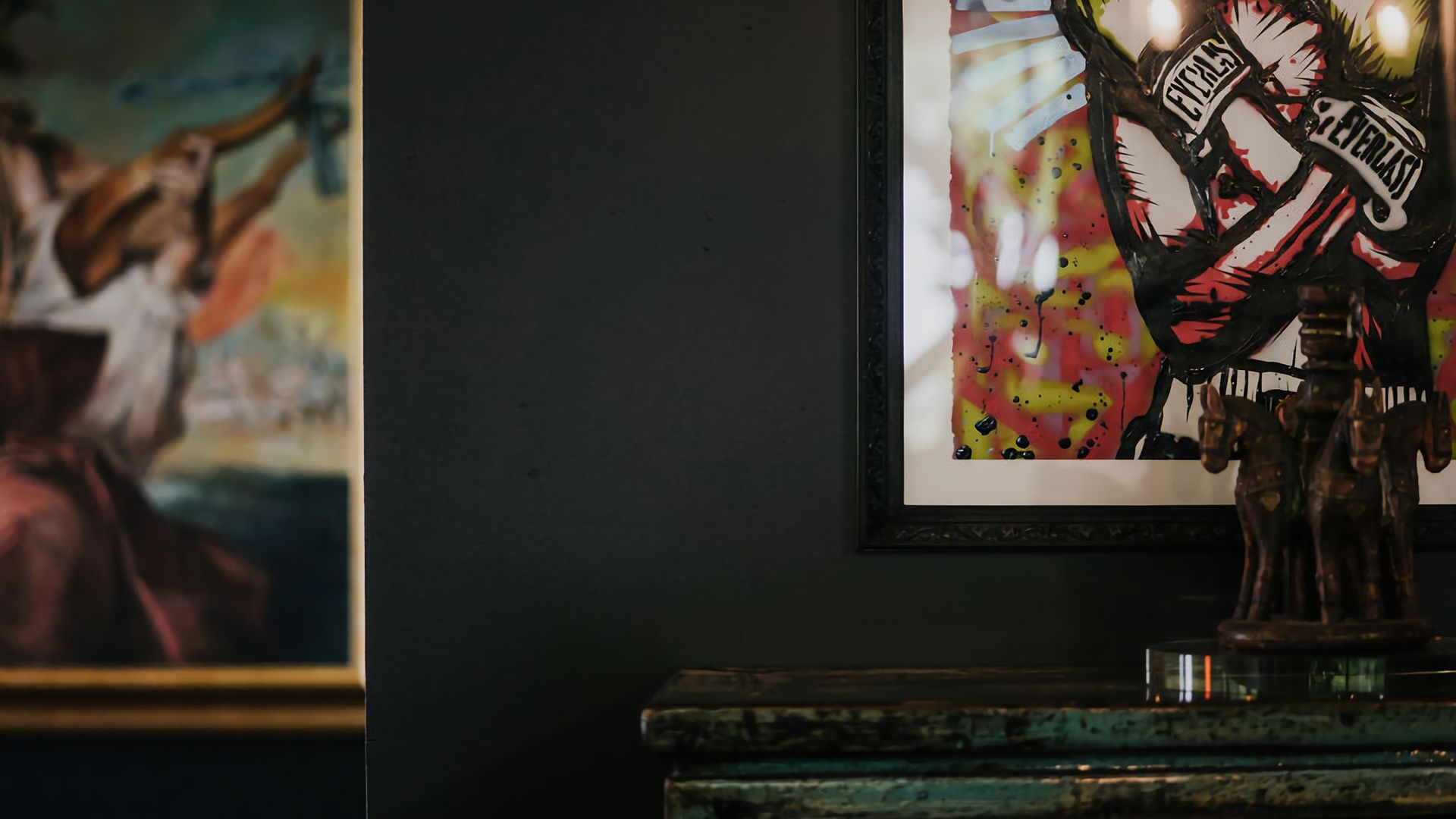 The dark walls and deep velour couches give this home a moody, contemporary edge. Coupled with the incredible array of curated artwork that pepper every wall and surface, Istana Lodge gives the feel of staying in a cosy local gallery. Along with statement furniture, indoor plants, and pops of colour, there is no shortage of elements to draw the eye.