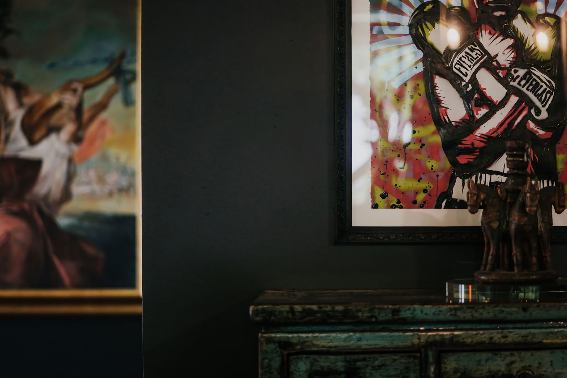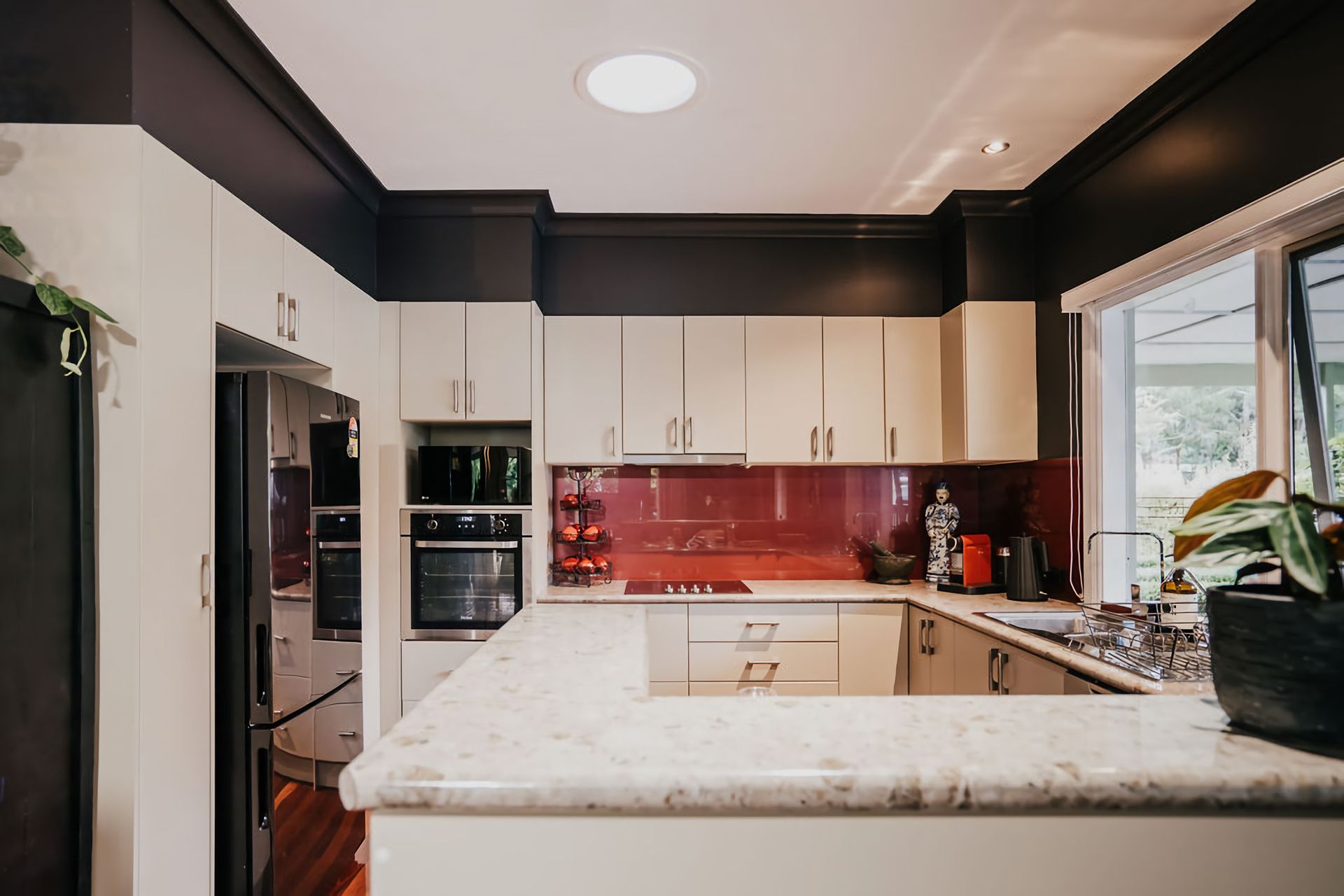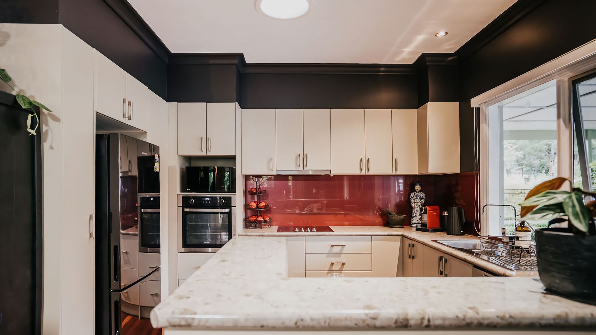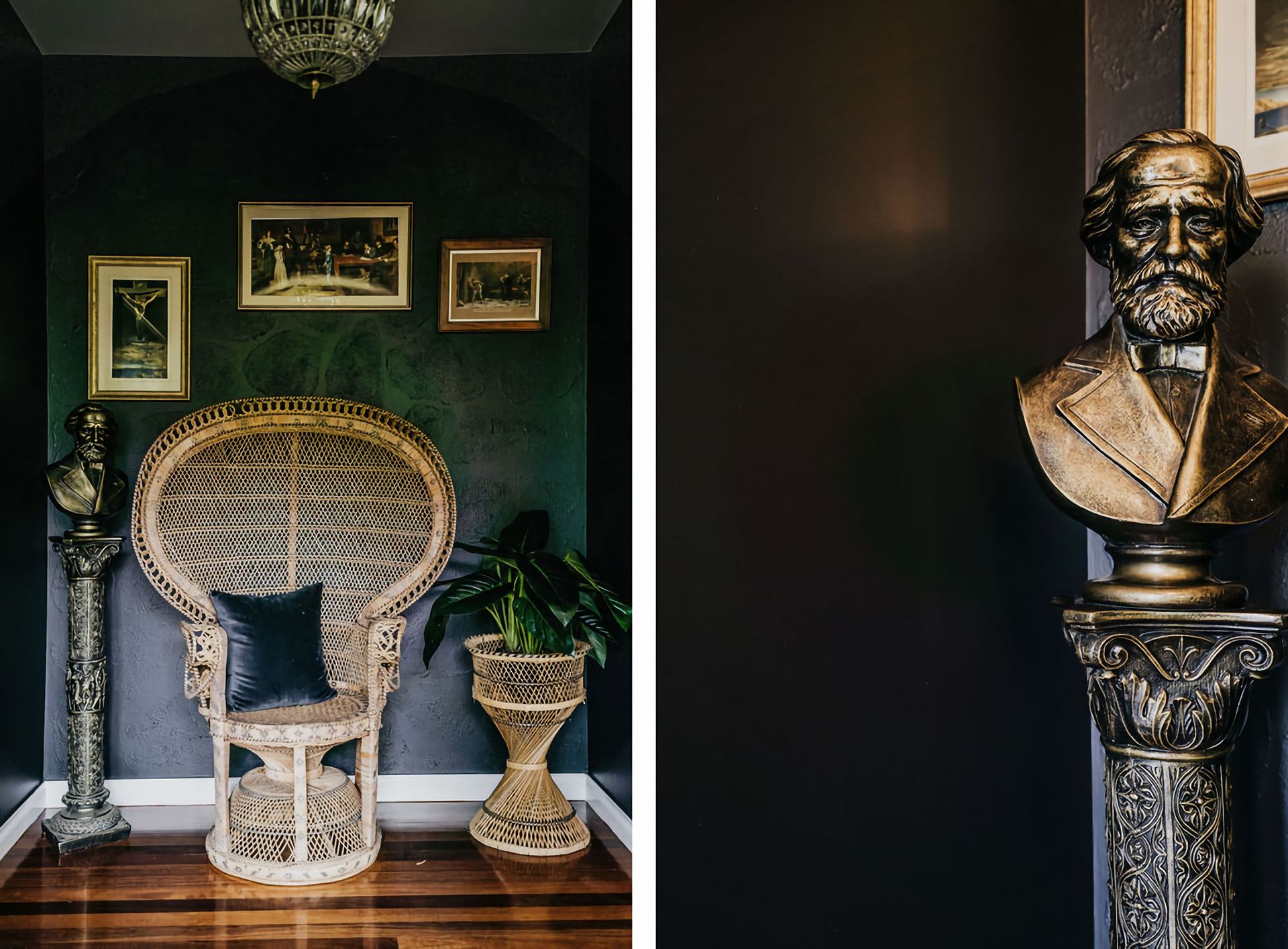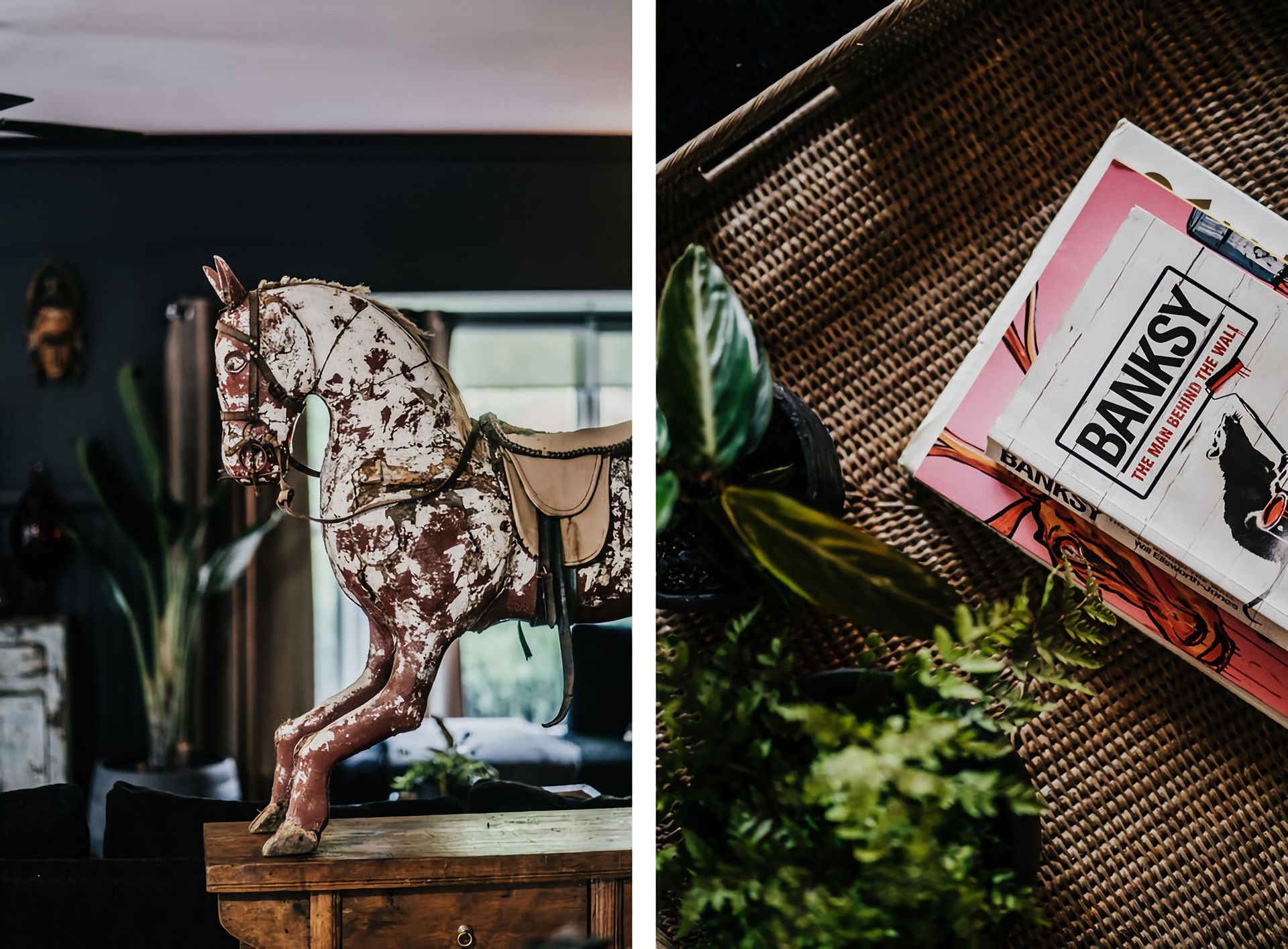The dark walls and deep velour couches give this home a moody, contemporary edge. Coupled with the incredible array of curated artwork that pepper every wall and surface, Istana Lodge gives the feel of staying in a cosy local gallery. Along with statement furniture, indoor plants, and pops of colour, there is no shortage of elements to draw the eye.