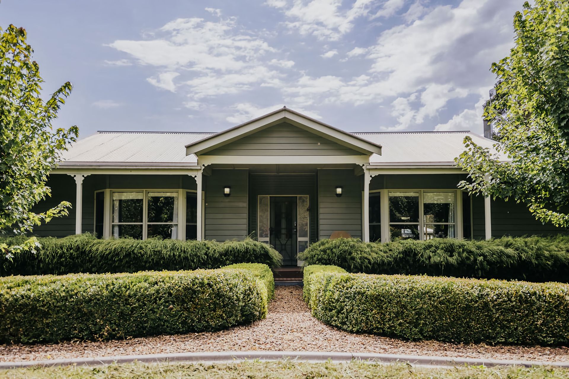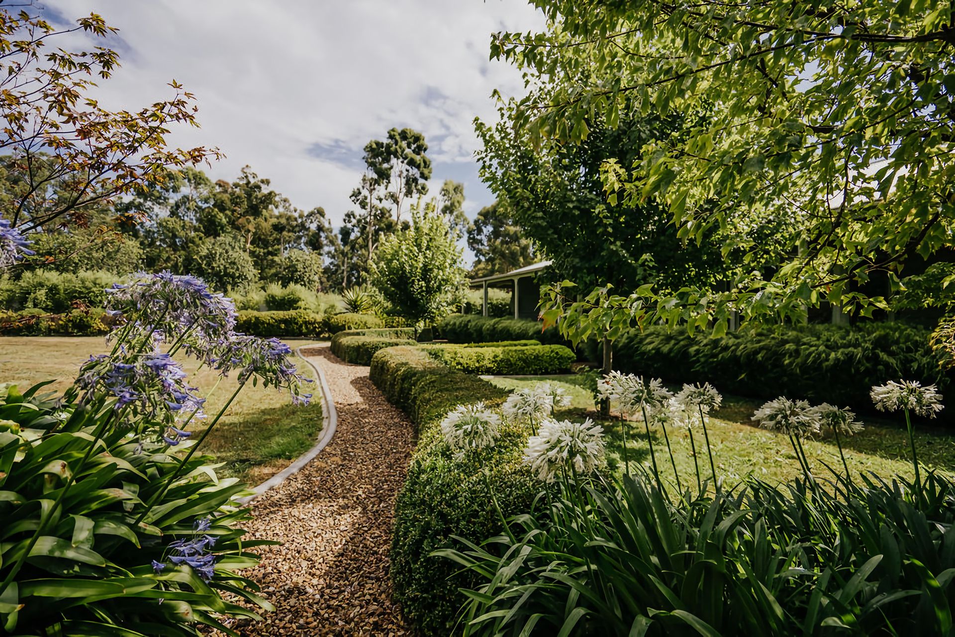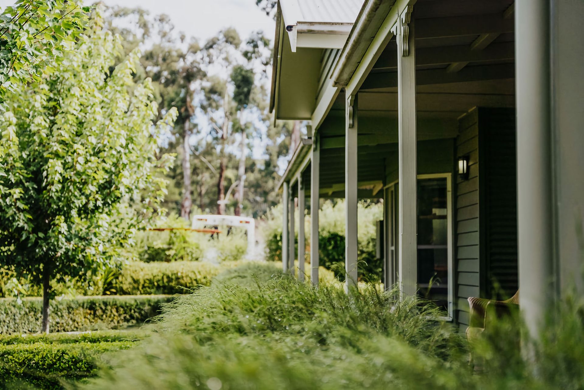 Step outside into the grounds, and you find yourself surrounded by lush gardens, perfectly manicured lawns, paths and hedges. A little further out, great tall gum trees surround the property, giving the sense of your own little slice of heaven out in the country. Located on acreage, the expansive grounds give you plenty of space to relax and explore.