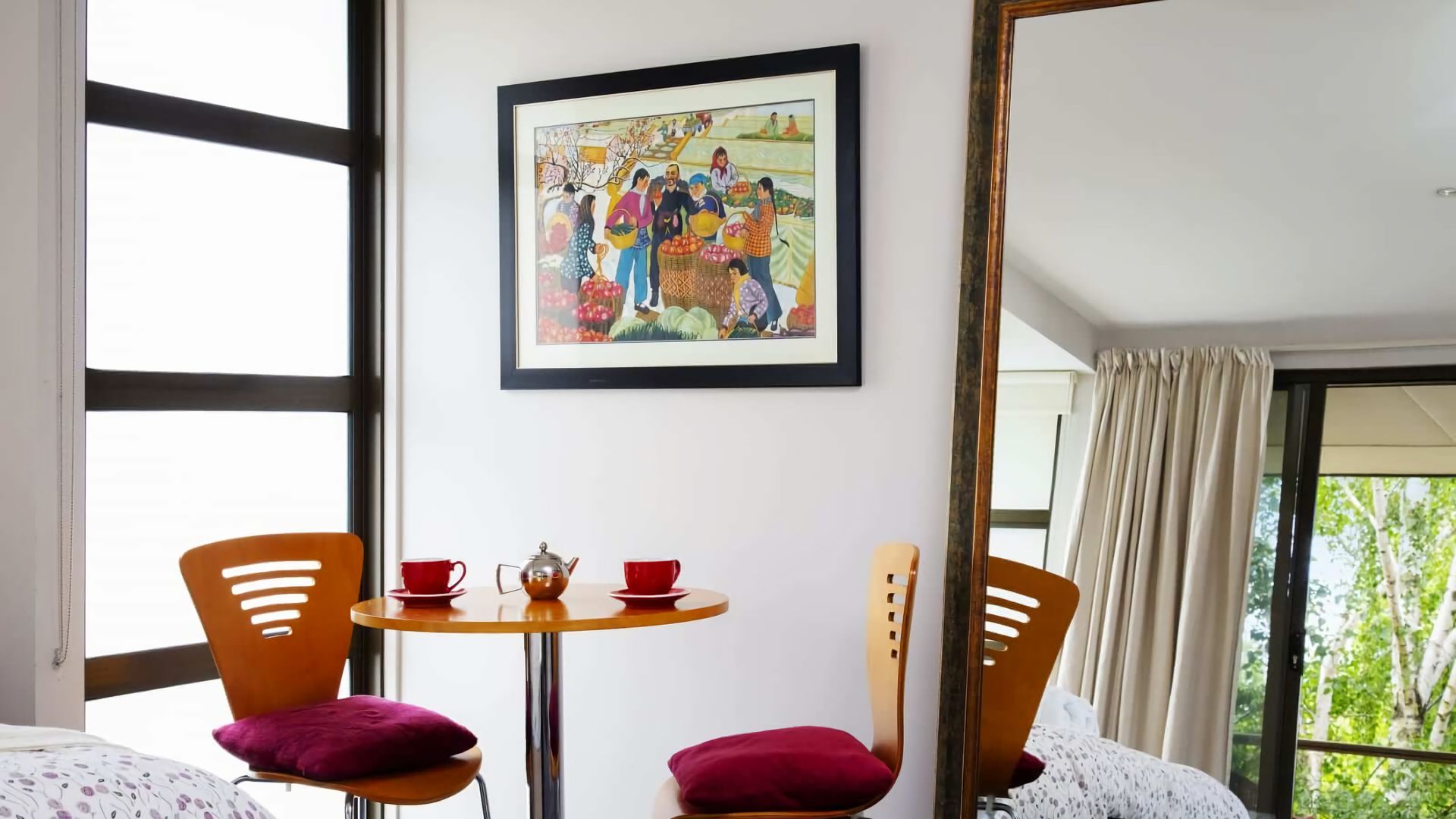 The interior design with its stylish collection of Asian original art and a fusion of antique and contemporary furniture blends perfectly with the warm red tones of the rugs and polished concrete floor. This stylish multi level villa with open plan living provides a fully equipped kitchen with dining for 6 people both inside or outside on the beautiful deck overlooking the Lake. This is an unparalleled location.