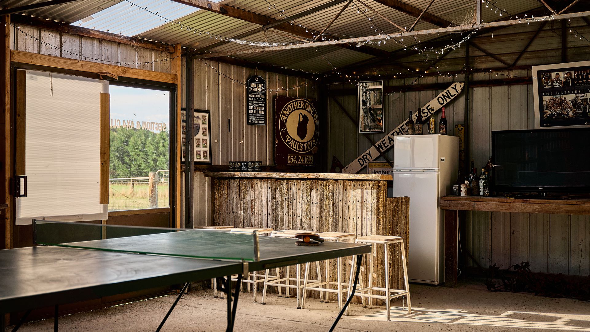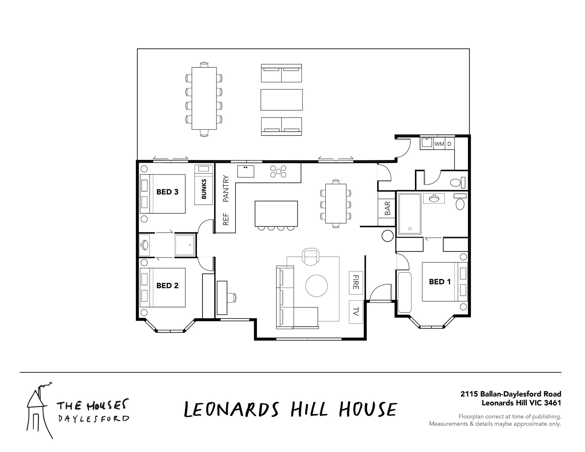 Leonards Hill House is a 3 bedroom, 2 bathroom house located on the fringe of the Wombat State Forest. This gorgeous, renovated home oozes warmth and comfort, with a sleek style and fully equipped chef's kitchen to boot. The kitchen has quality SMEG appliances and a separate bar with a drinks fridge, opening onto the enormous outdoor entertaining space. Inside, be warmed by the locally made Ned Kelly Fireplace in the centre of the home, as well as large panel heater in the kitchen area and some portable heaters throughout. As well as a beautiful outdoor dining space, Leonards Hill House also features a games room with bar area, ping pong table and wood heater.
