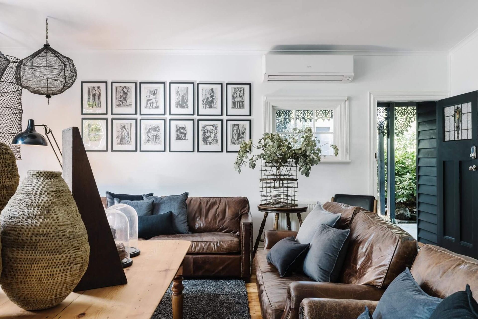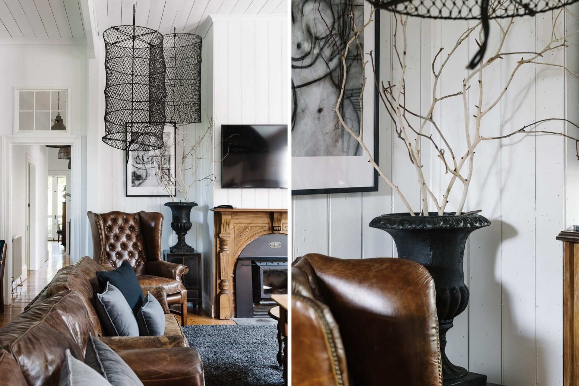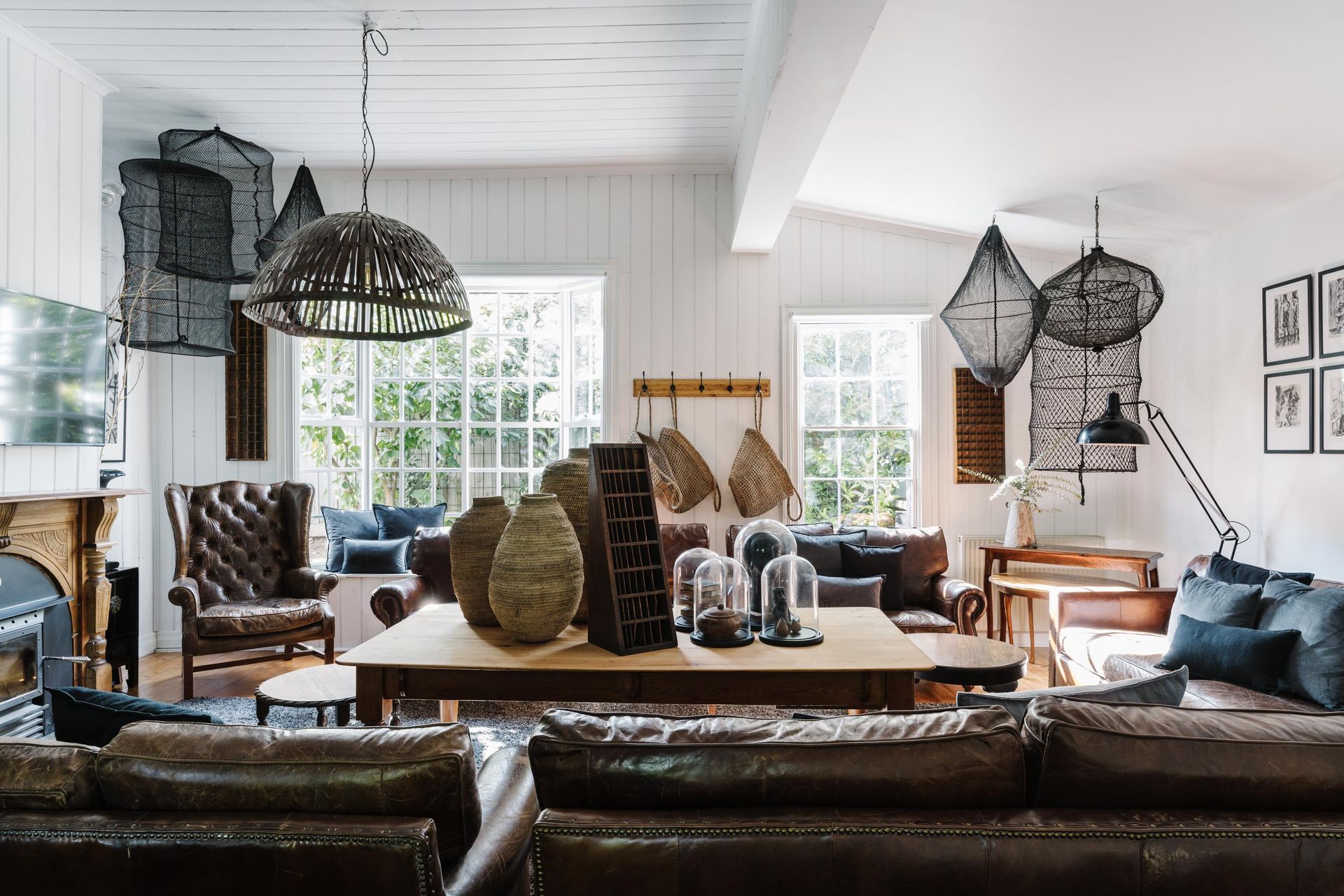 Situated in the prestigious Wombat Hill precinct, opposite the iconic Convent Gallery and close to Daylesford’s attractions, Lewellyn House is ideally located for exploring the area. Inside, its blend of modern comfort and historic charm shines through rustic furnishings, potted plants, and characterful artworks.
