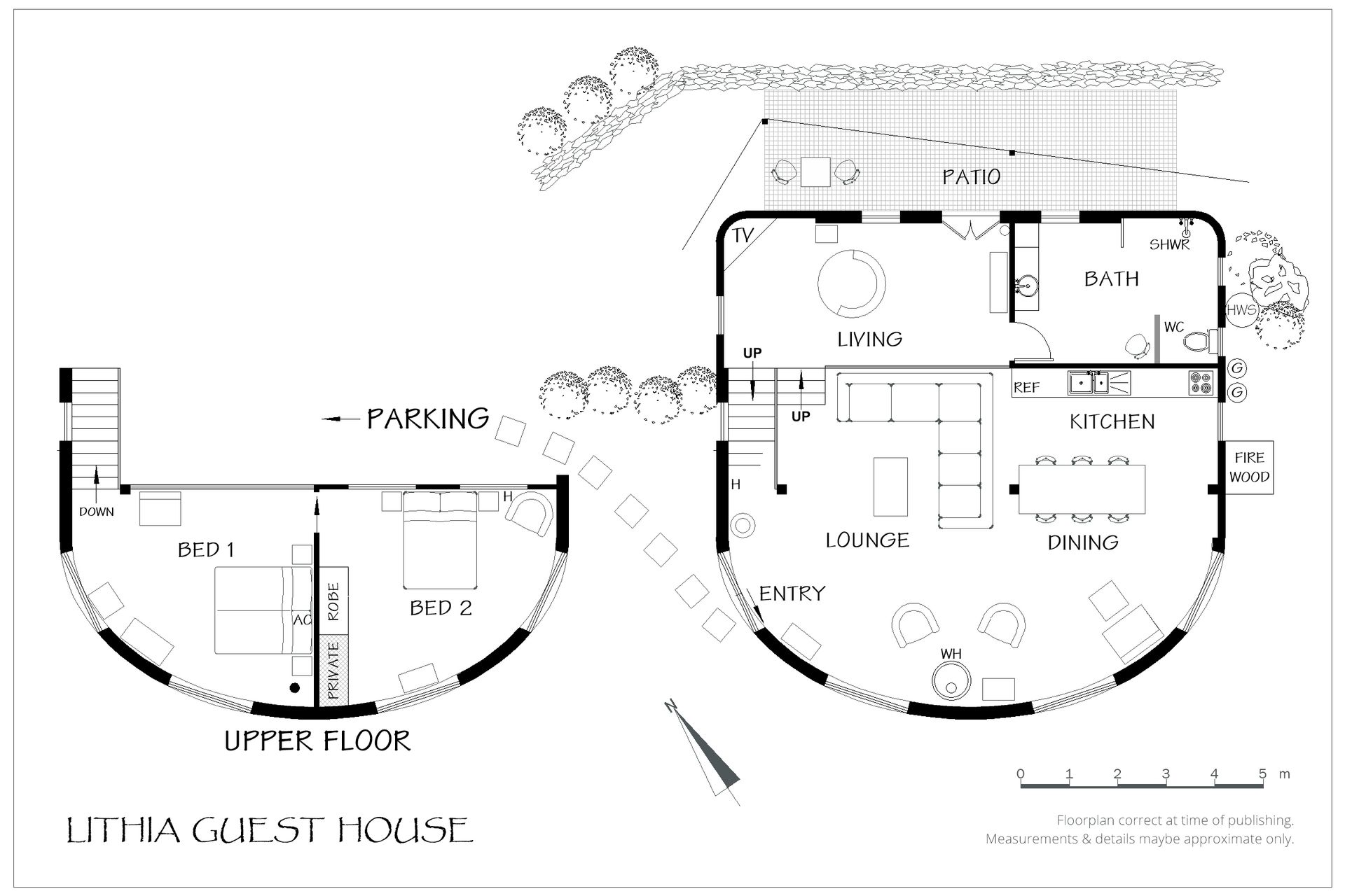 This breathtaking mud brick home with a unique architectural vision is set on 8 acres of tranquil bush. Lithia Guest House is a dream property in a dream location. Sleeping up to 4 guests across 2 bedrooms, this home is situated on an olive grove just five kilometres from Hepburn Springs.
