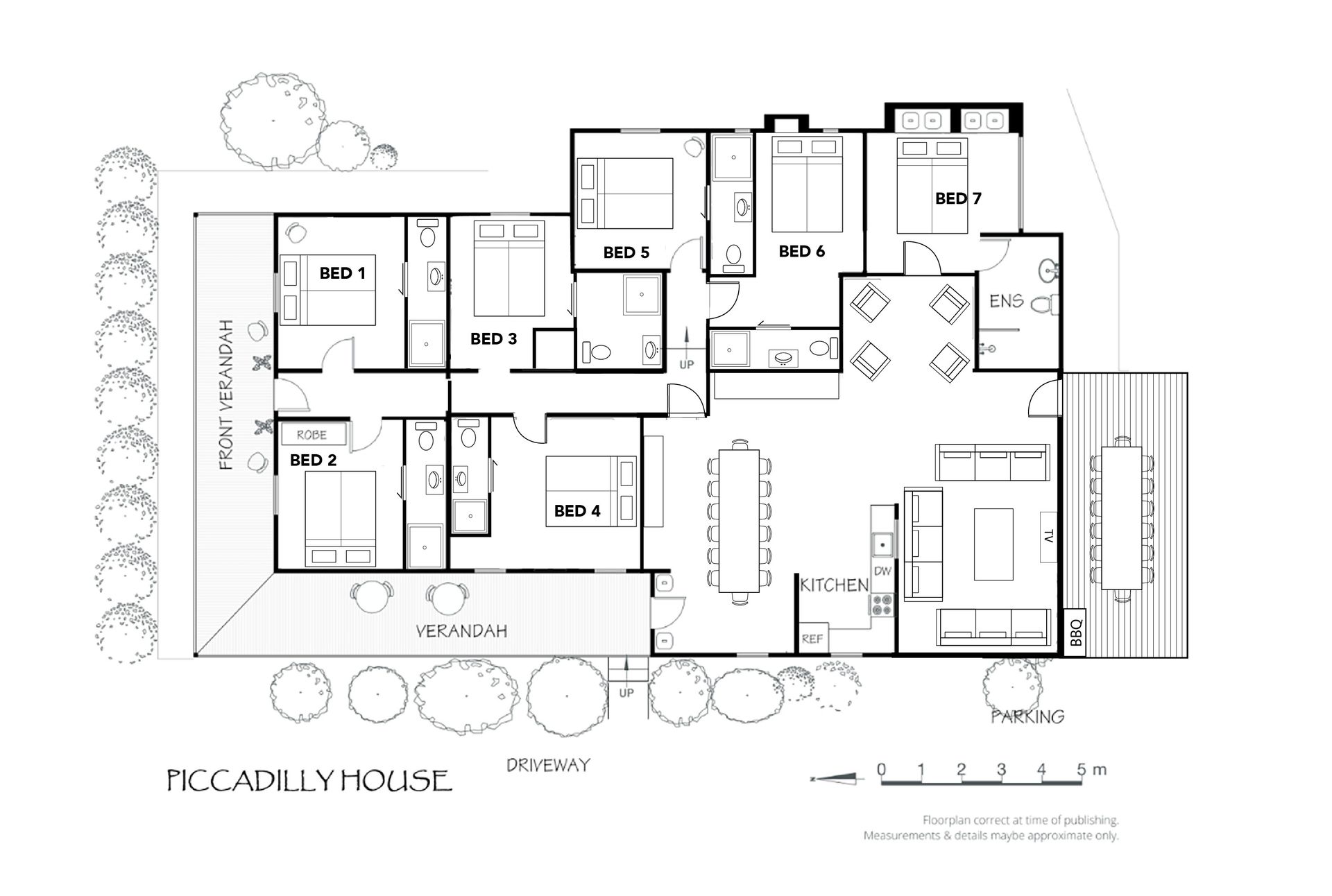 Step outside and embrace the pleasures of country living. The deck provides a peaceful spot to relax, while the BBQ and outdoor dining area, with generous seating, is perfect for leisurely meals in the open air. Surrounded by nature, Piccadilly House’s garden invites guests to unwind and enjoy the tranquillity of the setting, enhancing the home’s sense of calm and making it a true sanctuary for rest and relaxation.