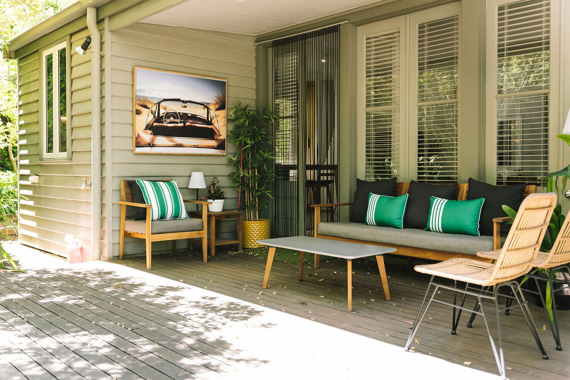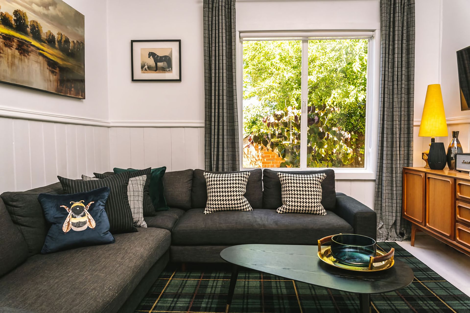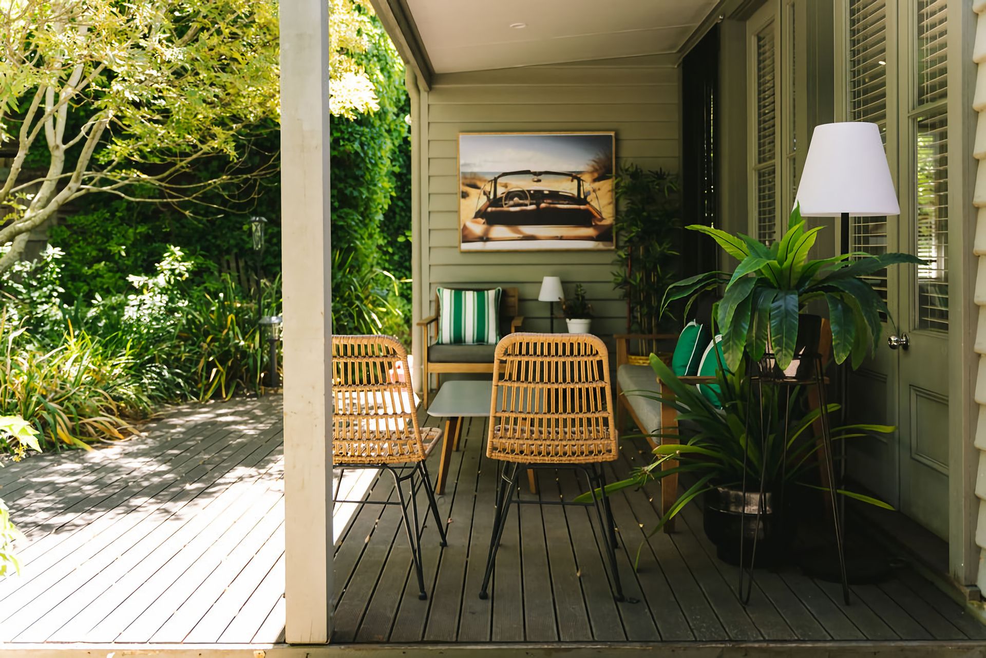 St. Etienne is nestled in its own woodland-style gardens, boasting mature Birch trees and bursting with purple, pink and blue flowers. The front verandah is perfect for enjoying a morning coffee or tea as the sun rising above Wombat Hill greets you. The rear verandah, deck and outdoor entertaining area have a full dining table, lounge chairs, and BBQ and is crowned with overhead string lighting for that extra layer of atmosphere.