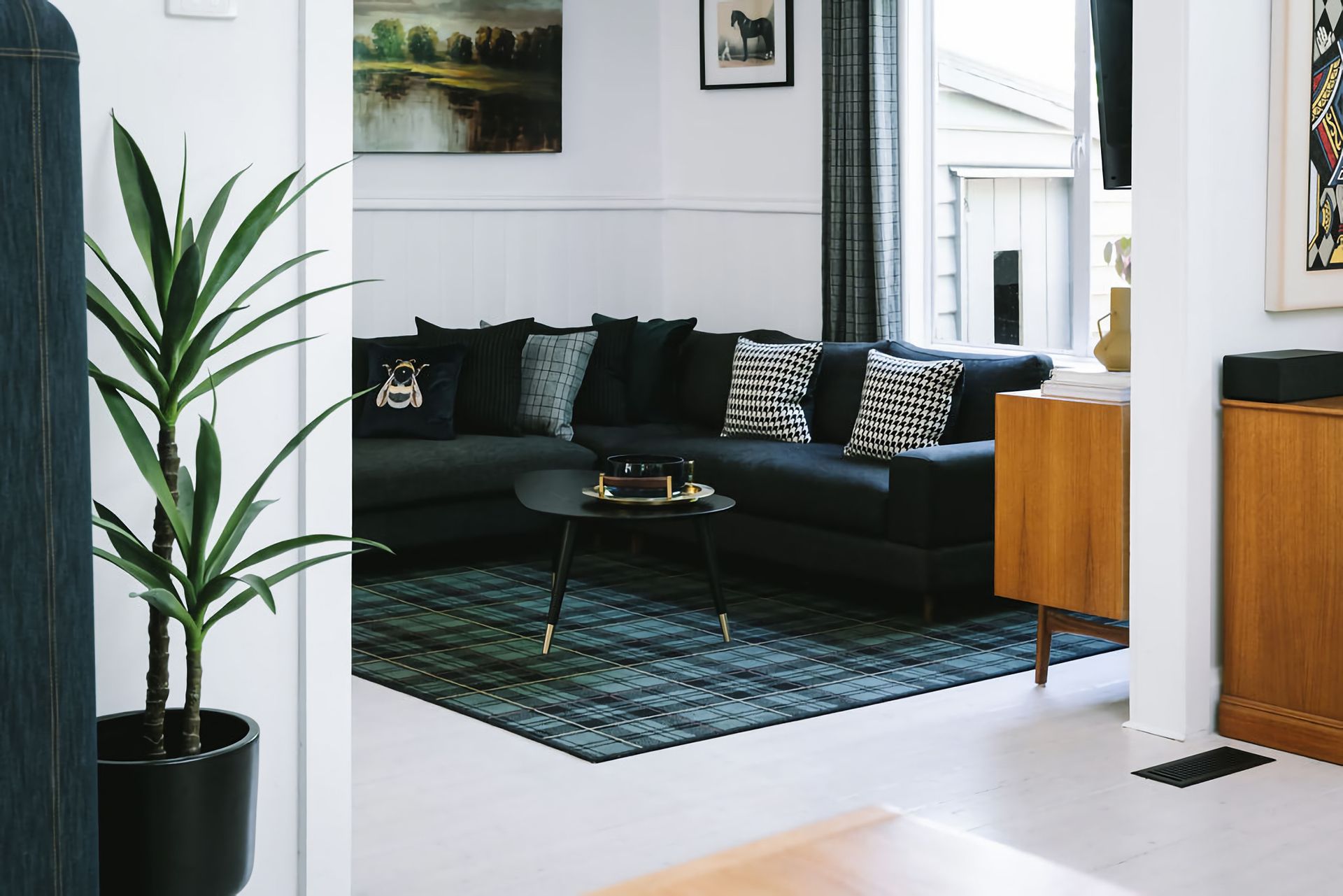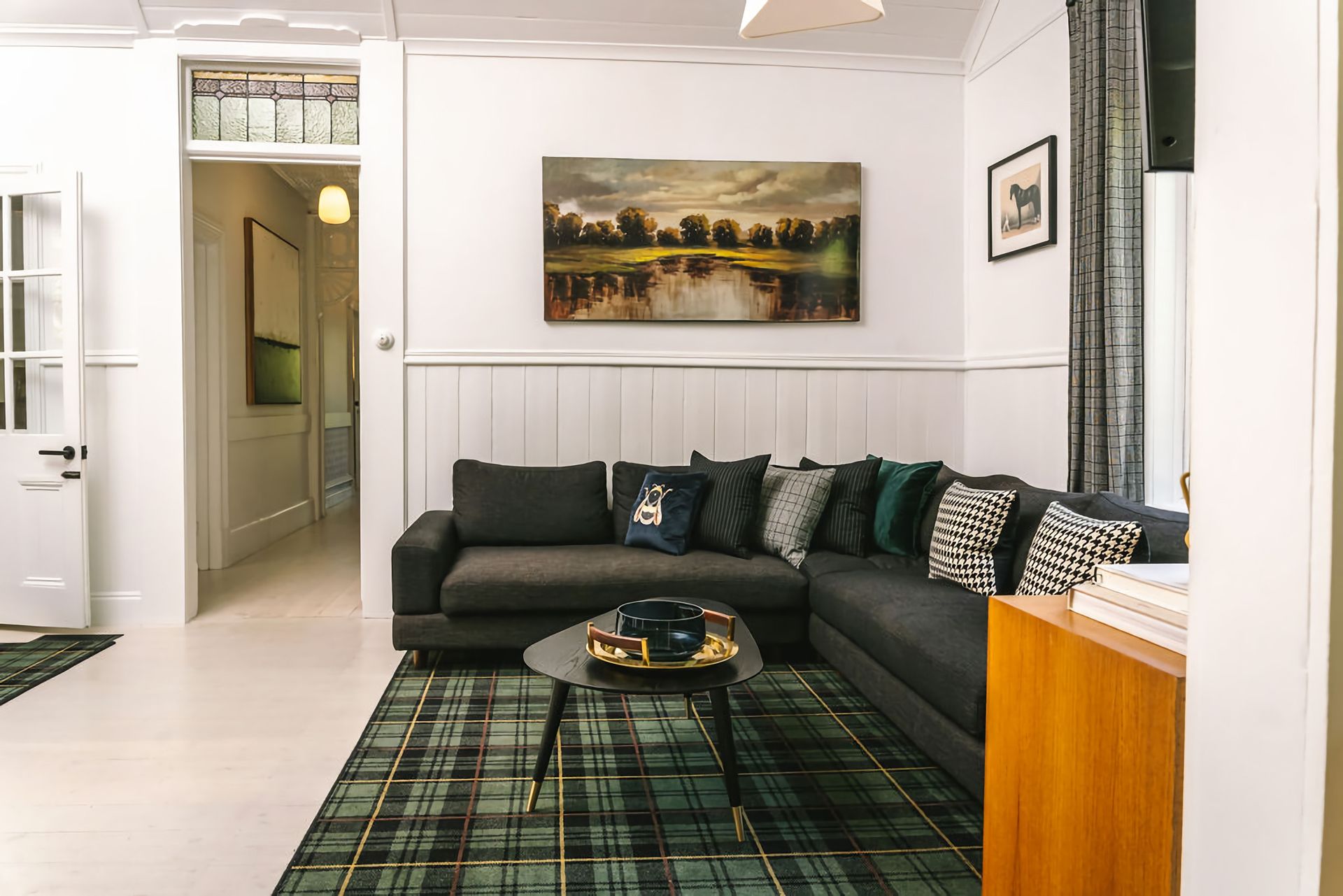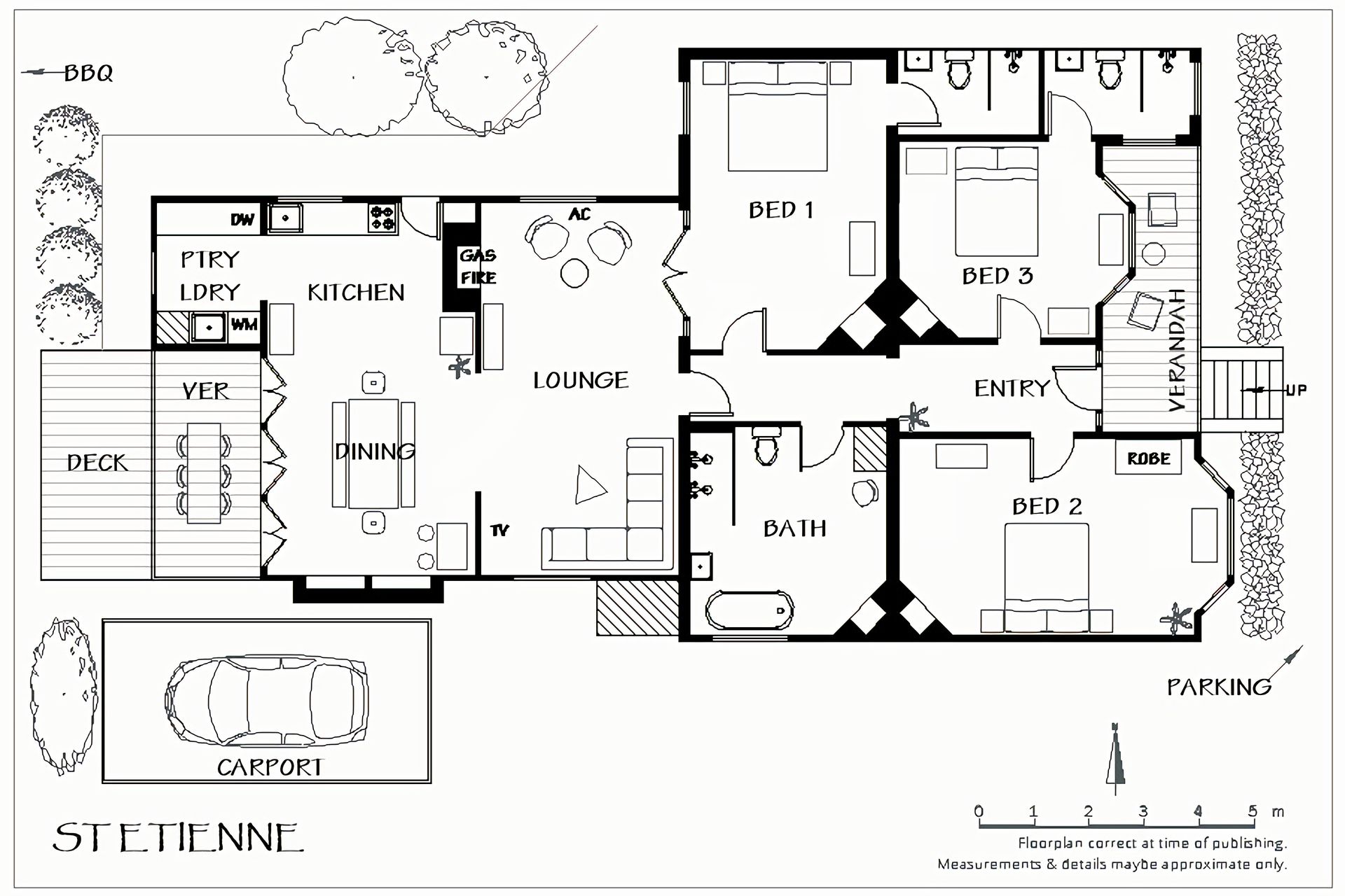 St. Etienne is nestled in its own woodland-style gardens, boasting mature Birch trees and bursting with purple, pink and blue flowers. The front verandah is perfect for enjoying a morning coffee or tea as the sun rising above Wombat Hill greets you. The rear verandah, deck and outdoor entertaining area have a full dining table, lounge chairs, and BBQ and is crowned with overhead string lighting for that extra layer of atmosphere.