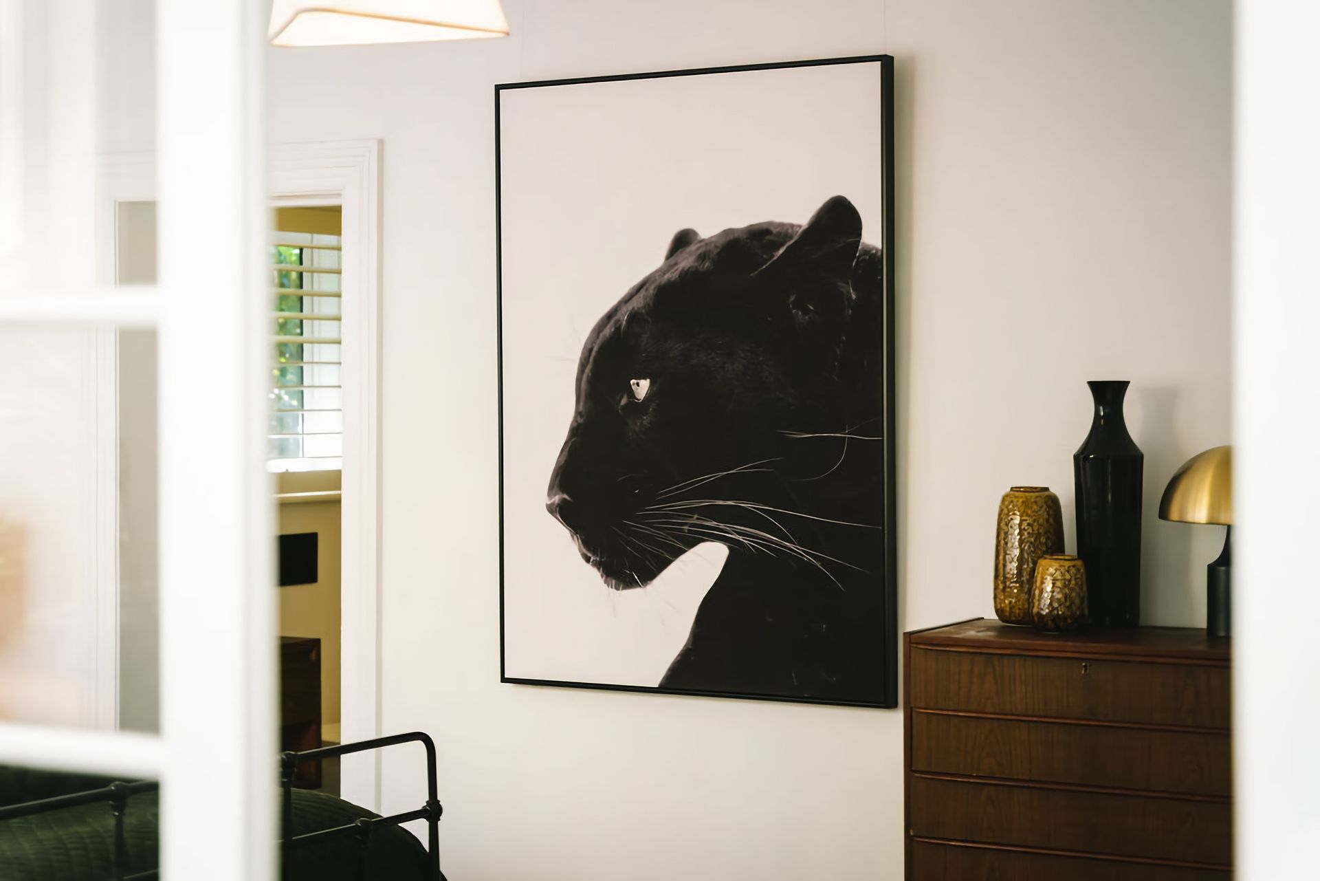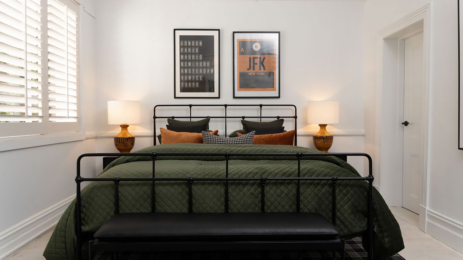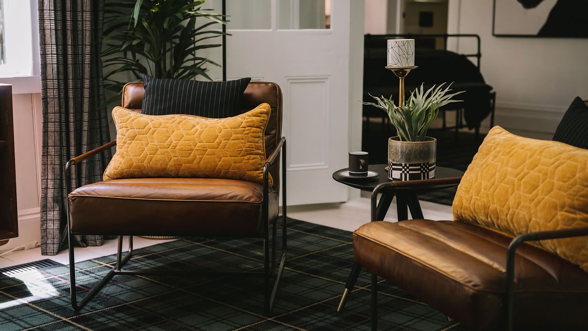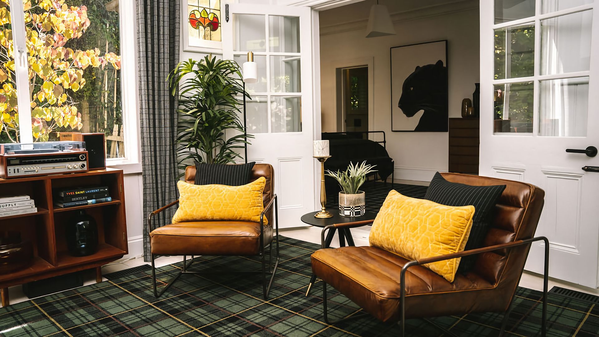 The kitchen and dining rooms share an open plan space complete with a second gas log fireplace which exudes a warm and welcoming ambience. Teak Mid-Century furnishings are a call-back to St. Etienne’s past, while the modern colour palette creates a fresh finishing touch. The kitchen is fitted with a bespoke breakfast bar and high-quality Smeg and Miele appliances, while its windows look out into the property’s vibrant garden.