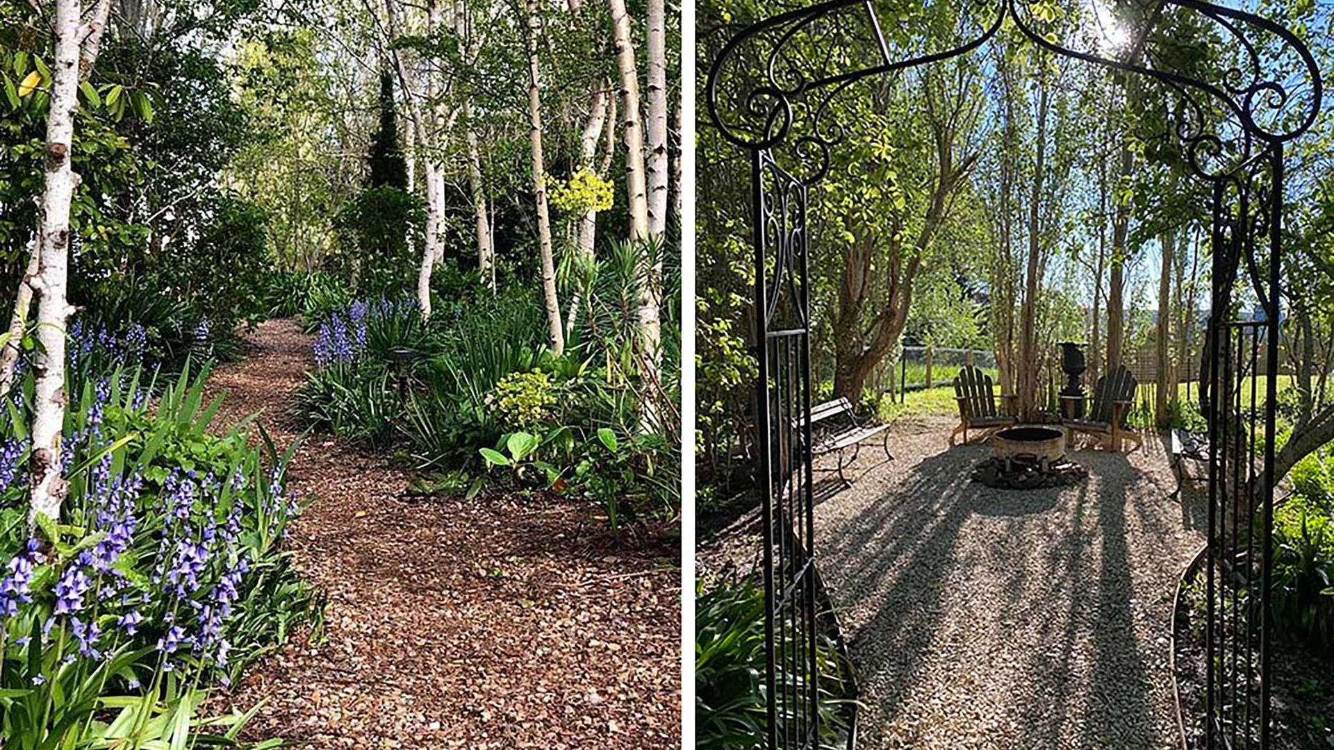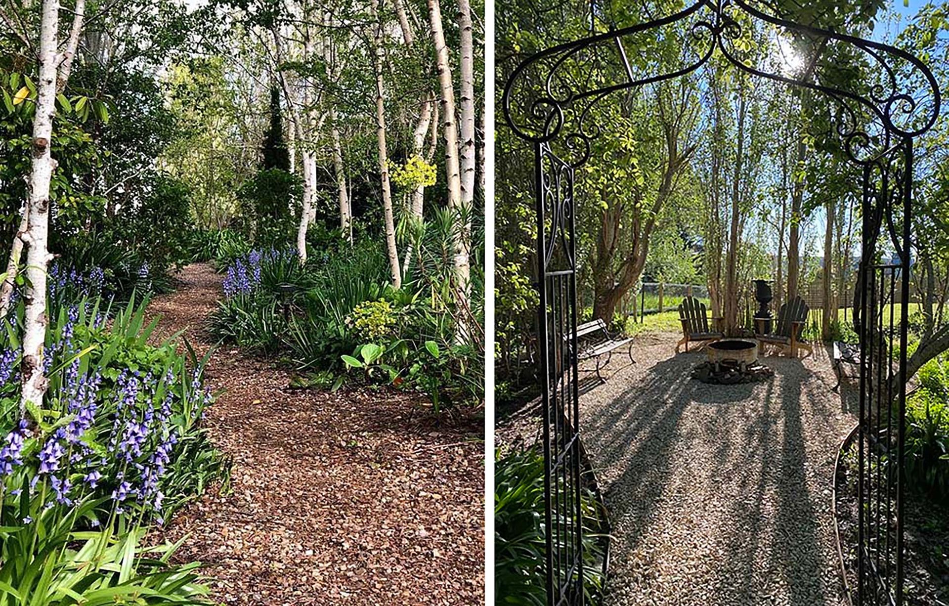 St Etienne’s meandering path leads to another outdoor setting with access beyond the tree line to a formal rose garden with views across to the Hepburn Regional Park.