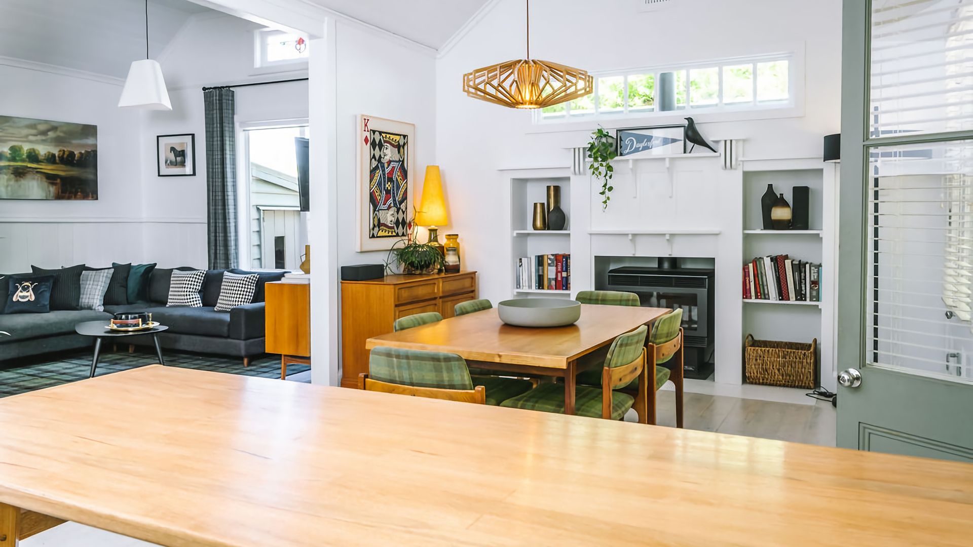 This outstanding property maintains its historical charm with beautifully intricate and original pressed metal ceilings while seamlessly incorporating quality made Mid-Century furnishings.