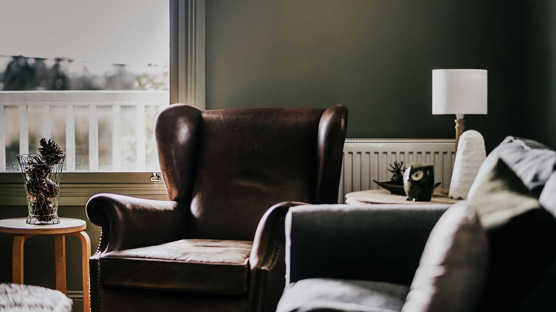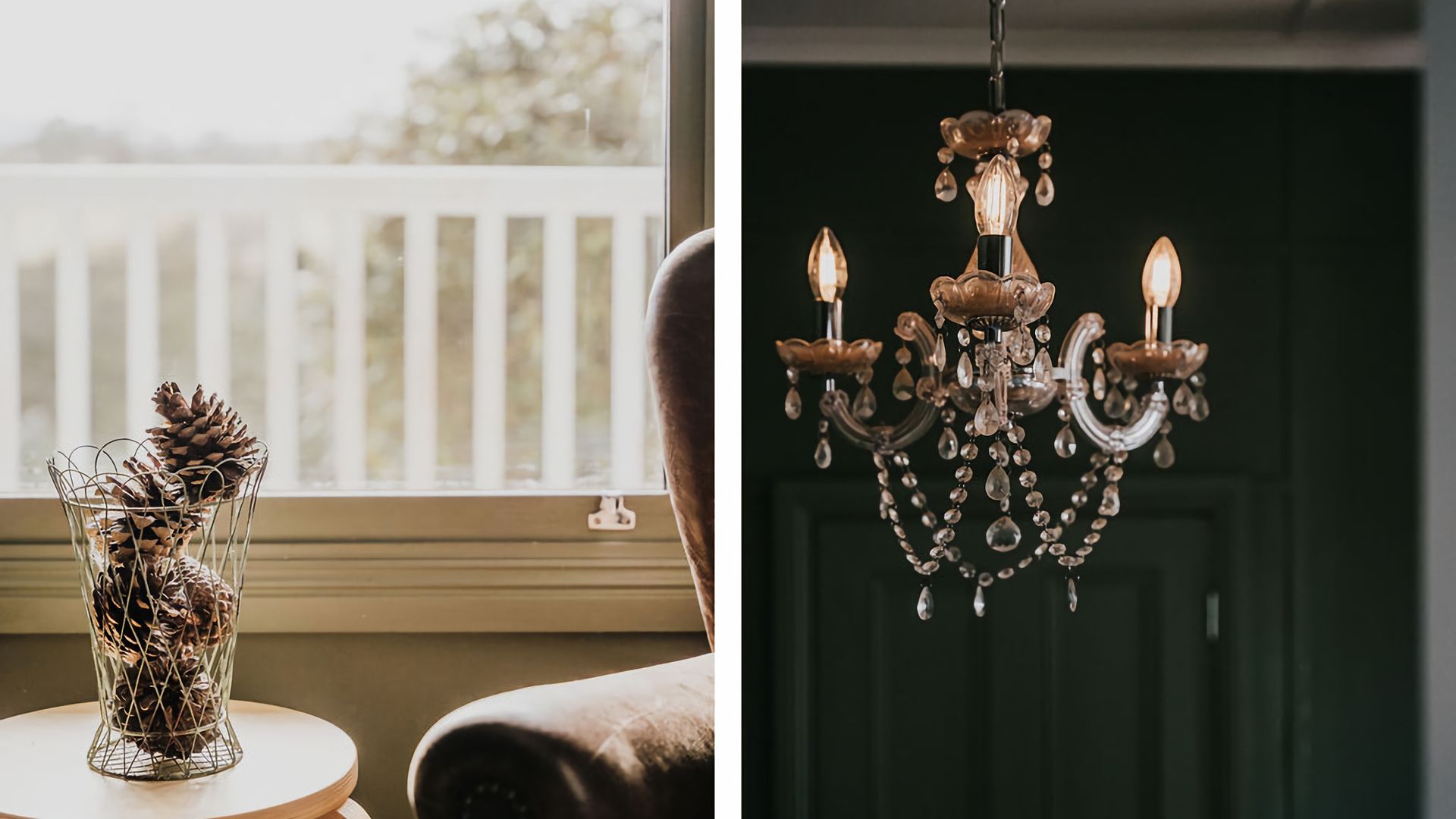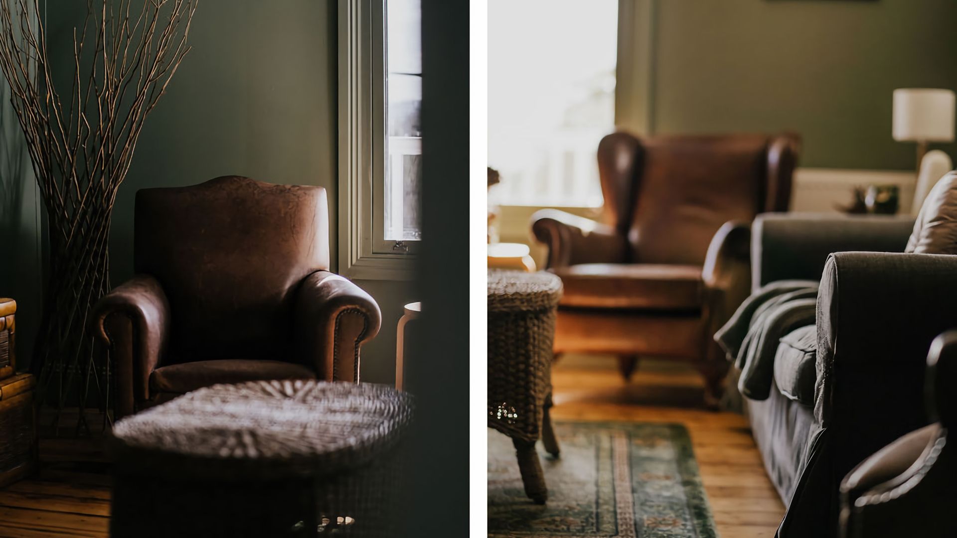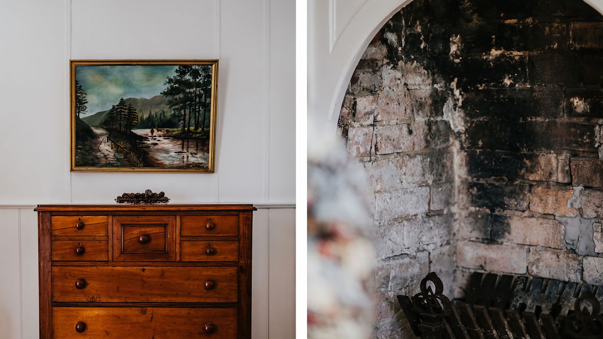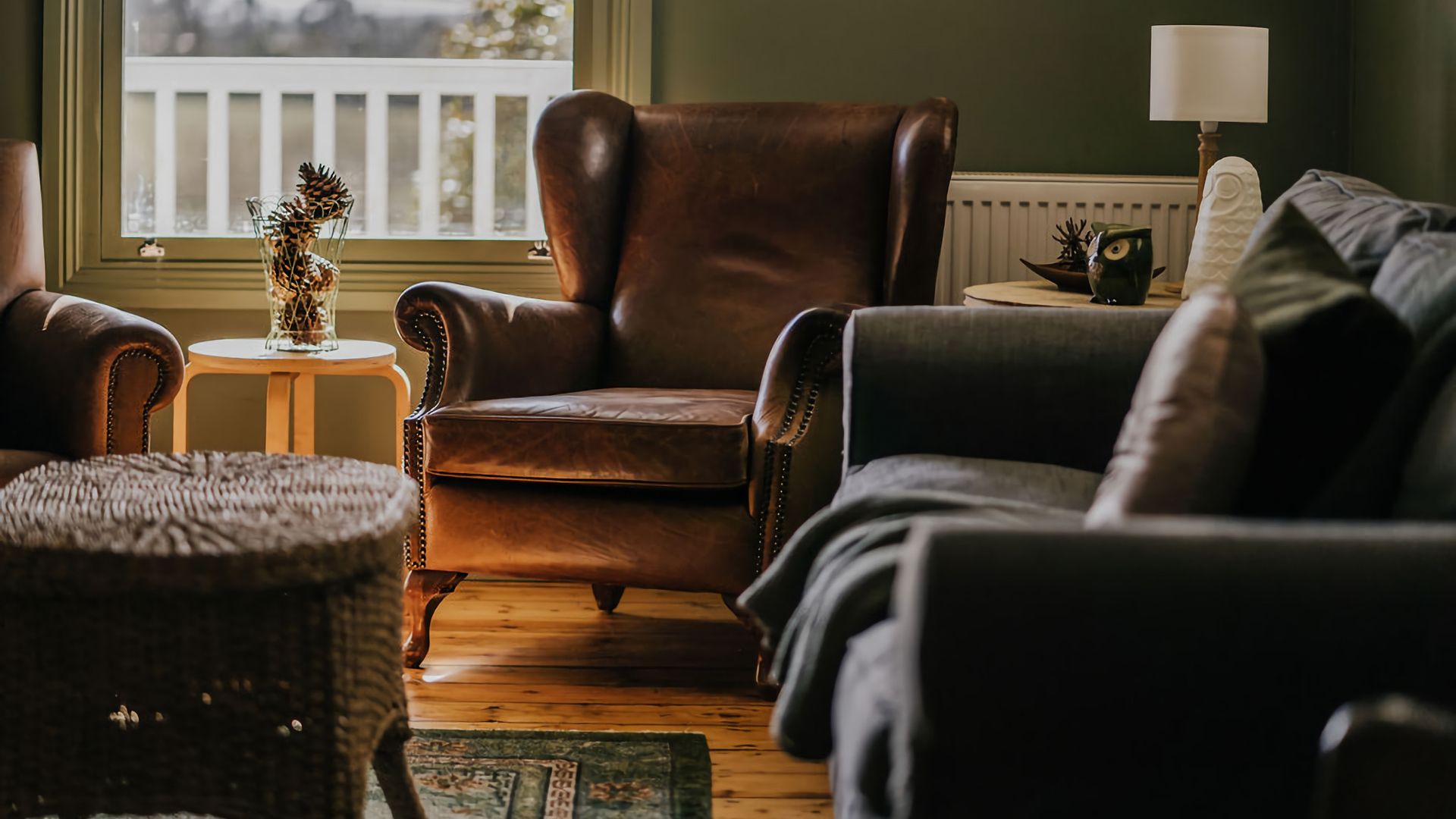 Gorgeous high vaulted ceilings give this space an open feeling, while the inset skylight fills the kitchen with incredible light. The forest green walls of the living room complement and contrast this, creating the perfect cosy atmosphere to curl up by the log fire with a book or a good movie. Rich wooden furniture is complemented by sleek kitchen appliances, giving your heritage stay a modern twist where it matters most.