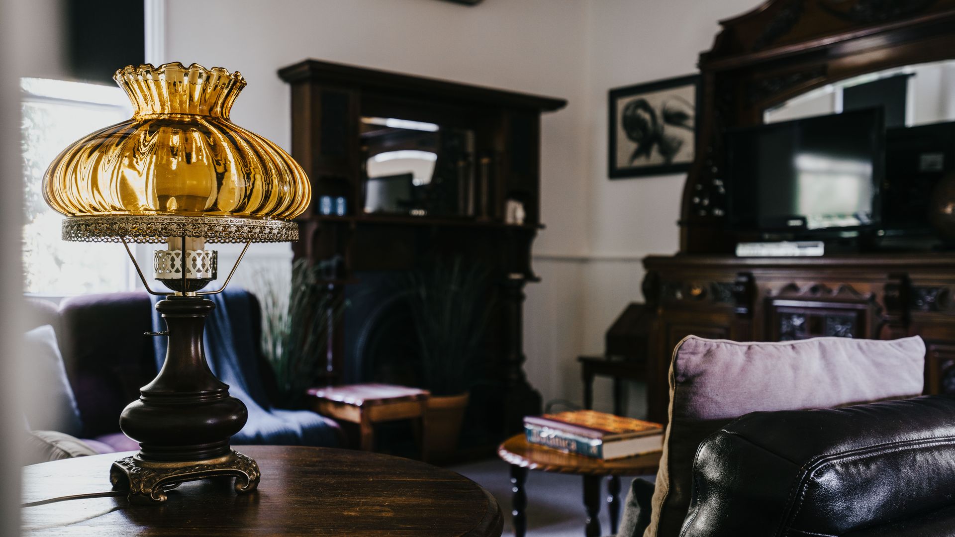 Inside, York House blends style with a rustic ambiance. The front living area showcases plush, dark leather sofas that beautifully contrast with the light, unadorned walls. This well-appointed common space, carpeted and elegantly furnished, is ideal for relaxation and television viewing.